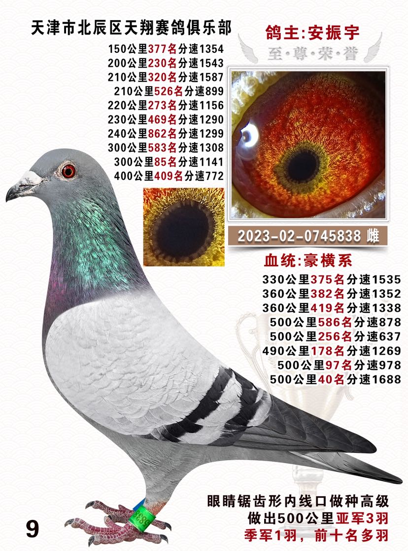 辽宁翔冠大棚鸽王95名直女 自身公棚决赛196预赛396价格:550元 运费:0元 -