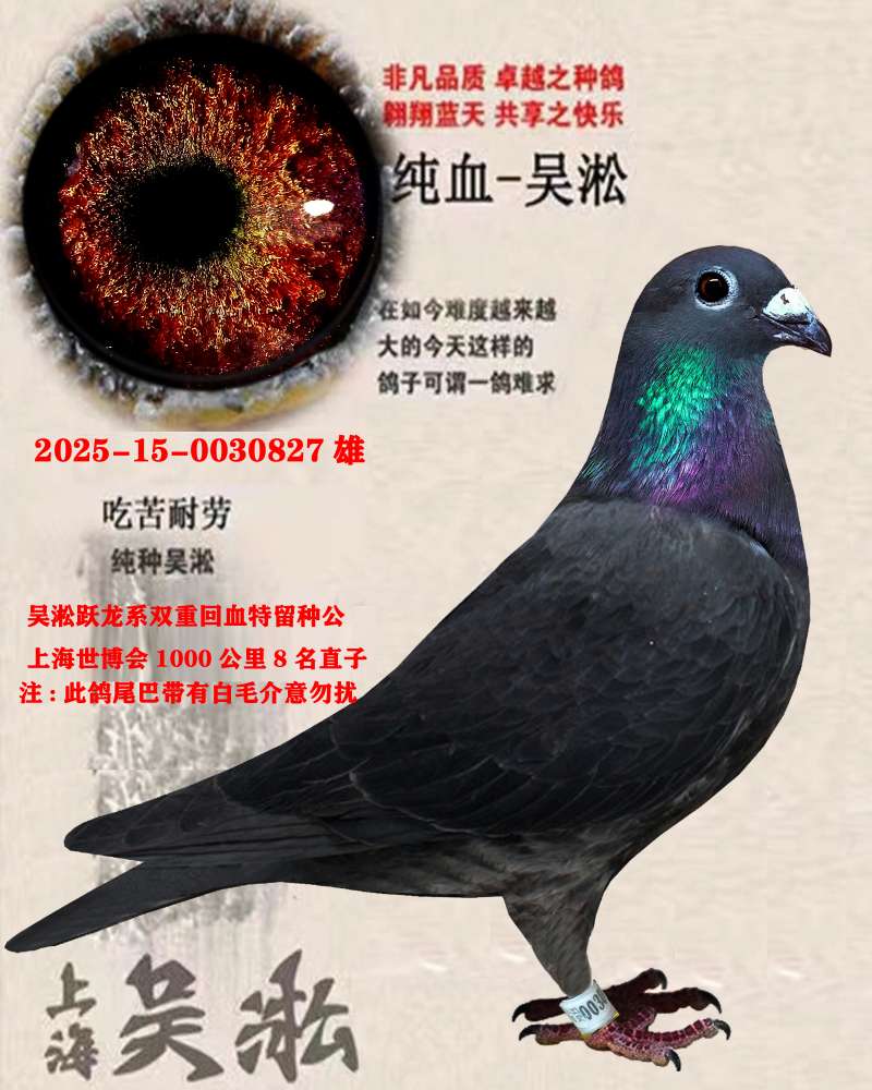 福利回馈鸽友吴淞跃龙系双重回血特留种公一!质量超棒终身保真!新疆海南加运费!商家:琪航ai赛鸽出价: ¥ 88.00/0次剩余时间:1天14小时7分