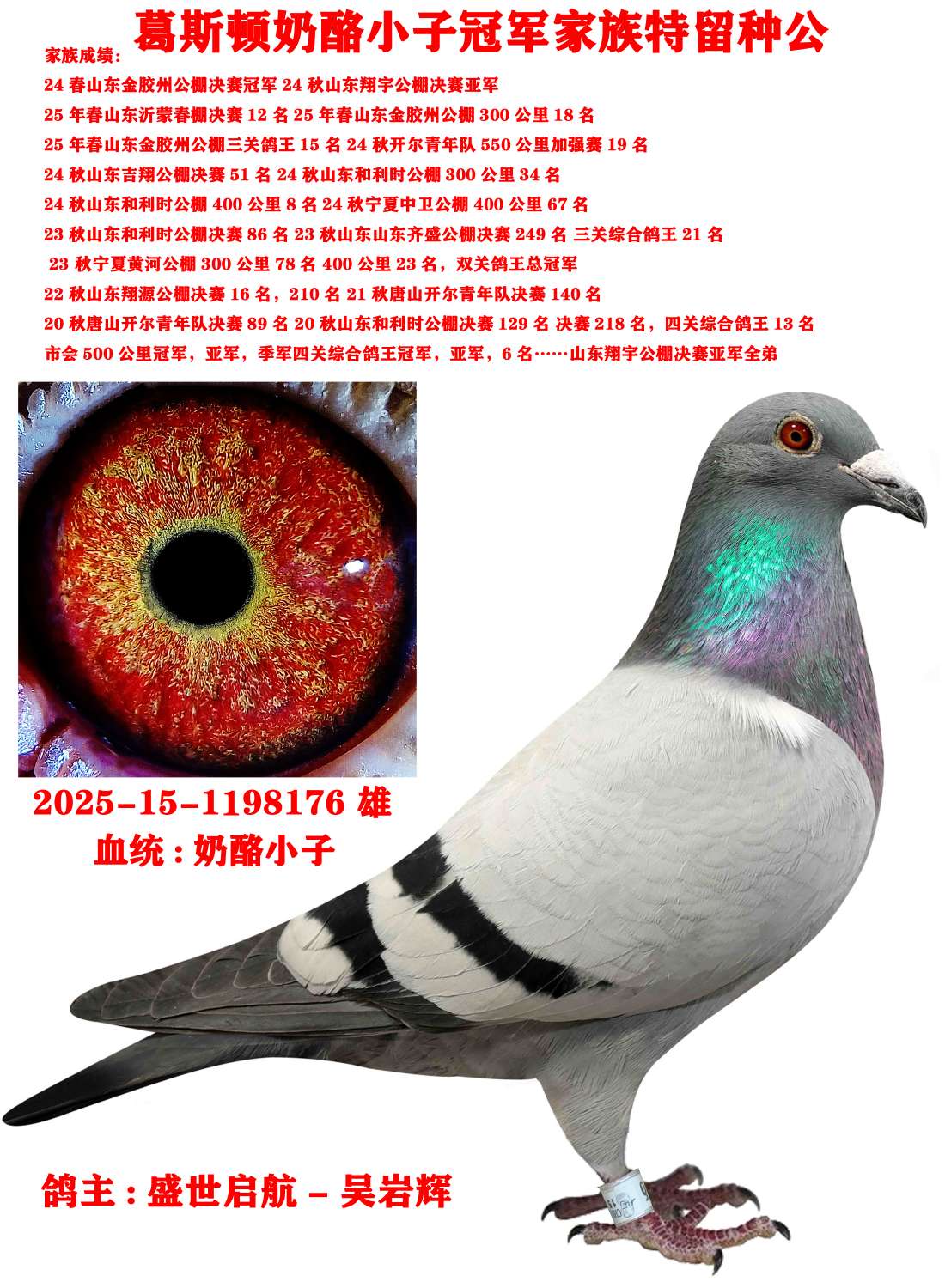 本舍奶酪小子冠军家族特留种公 家族斩获公棚协会多羽高位 带足环证一起发货 后面图片是家族获奖鸽照片商家:盛世启航-吴岩辉出价: ¥ 1000.00/0次剩余时间:4天4小时17分