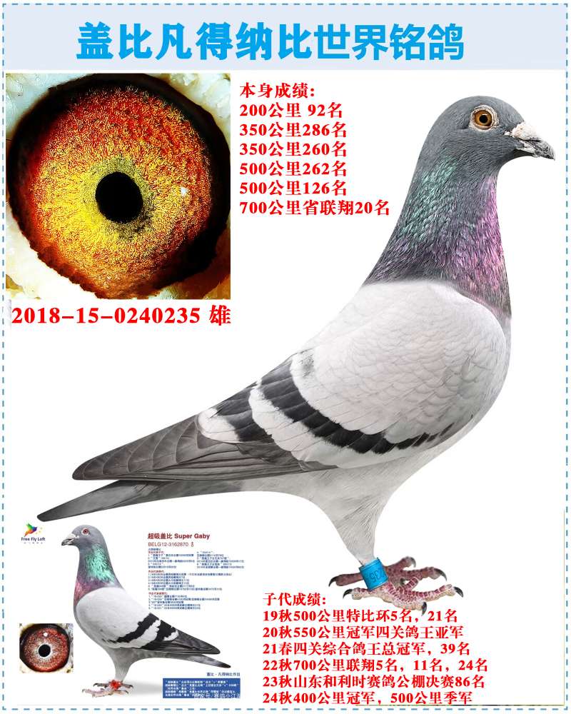 福利回馈鸽友盖比凡得纳比超级种公一羽!700公里联翔赛20名价格:300元 运费:60元