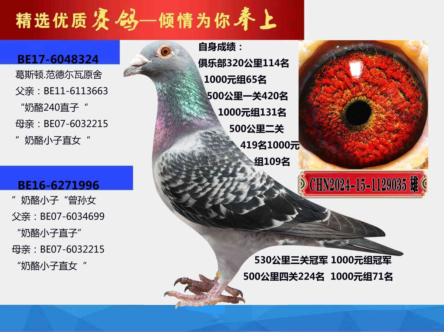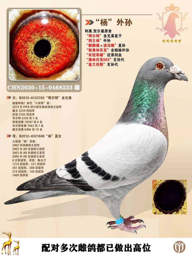 超级镇棚种雄,霸气种雄,鸽王冠军缔造者价格:658元 运费:0元 -