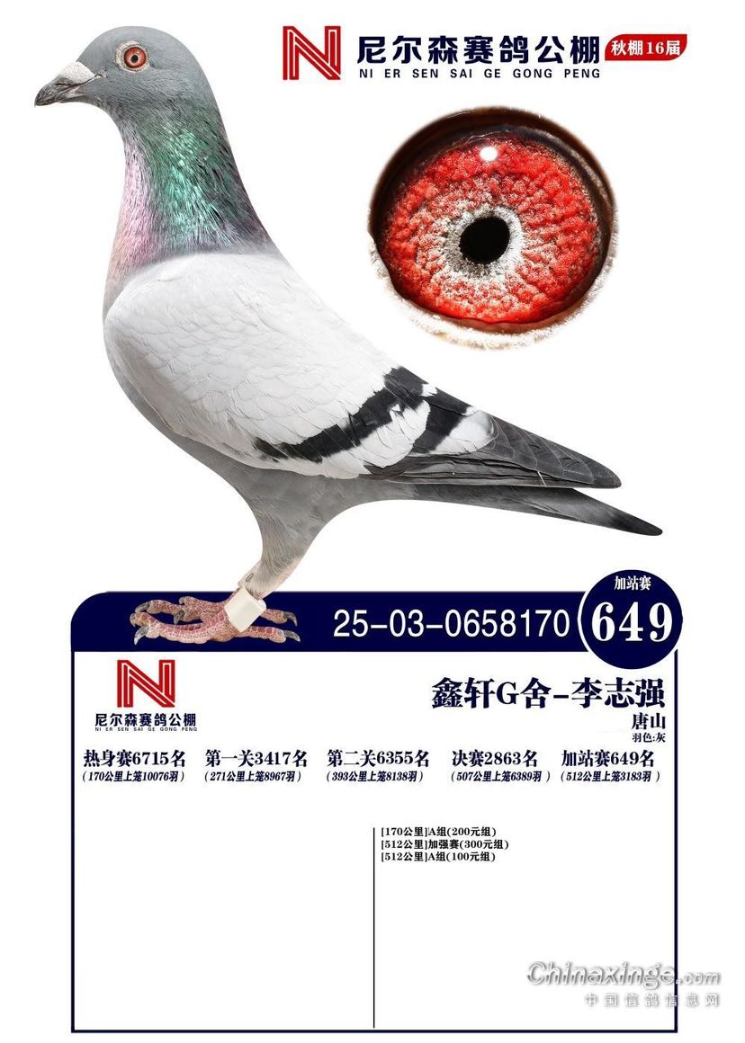 陕西鑫丝路公棚500红的决赛133名获奖鸽,此鸽三关都快价格:280元 运费:0元 -