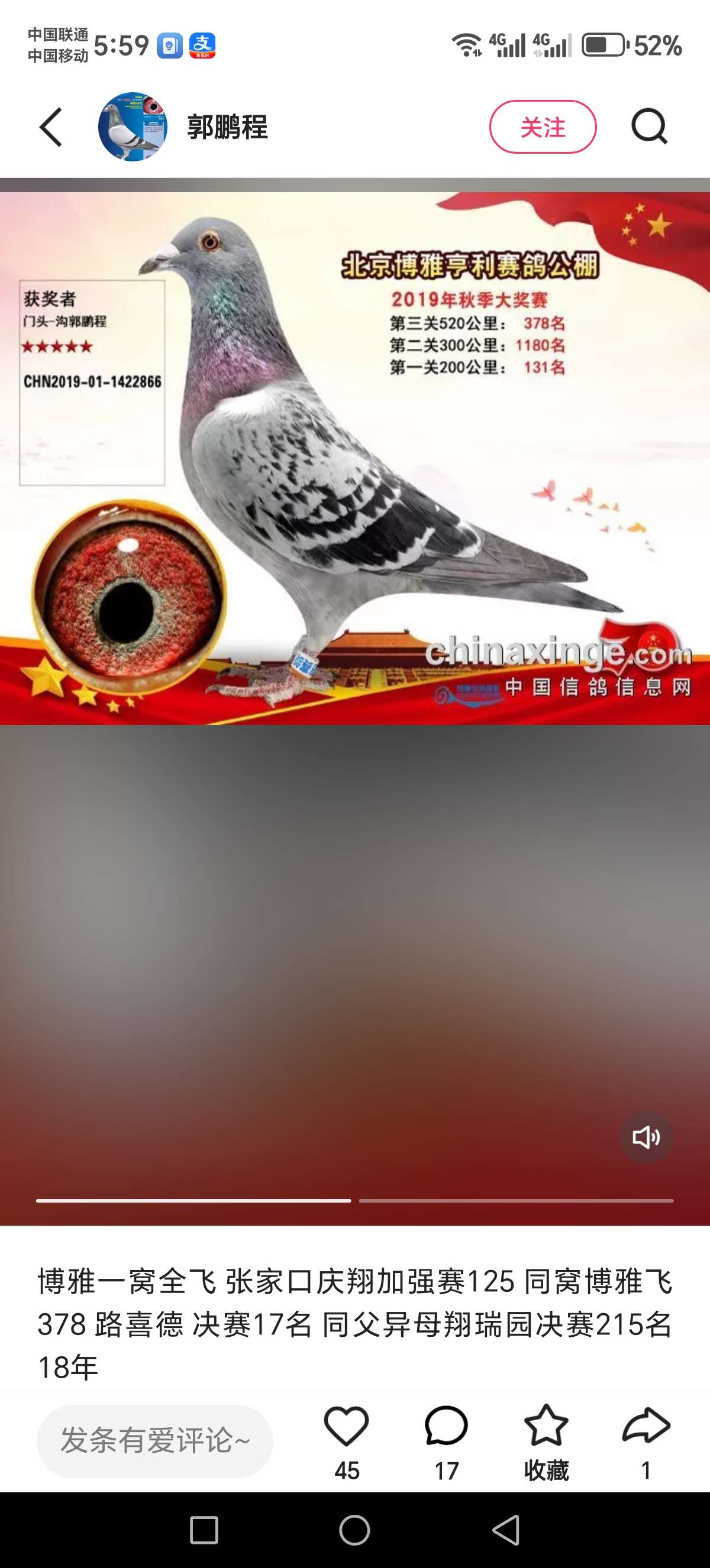 北京名家北京门头沟郭鹏程鸽业公棚决赛获奖鸽378名价格:268元 运费:0元 -