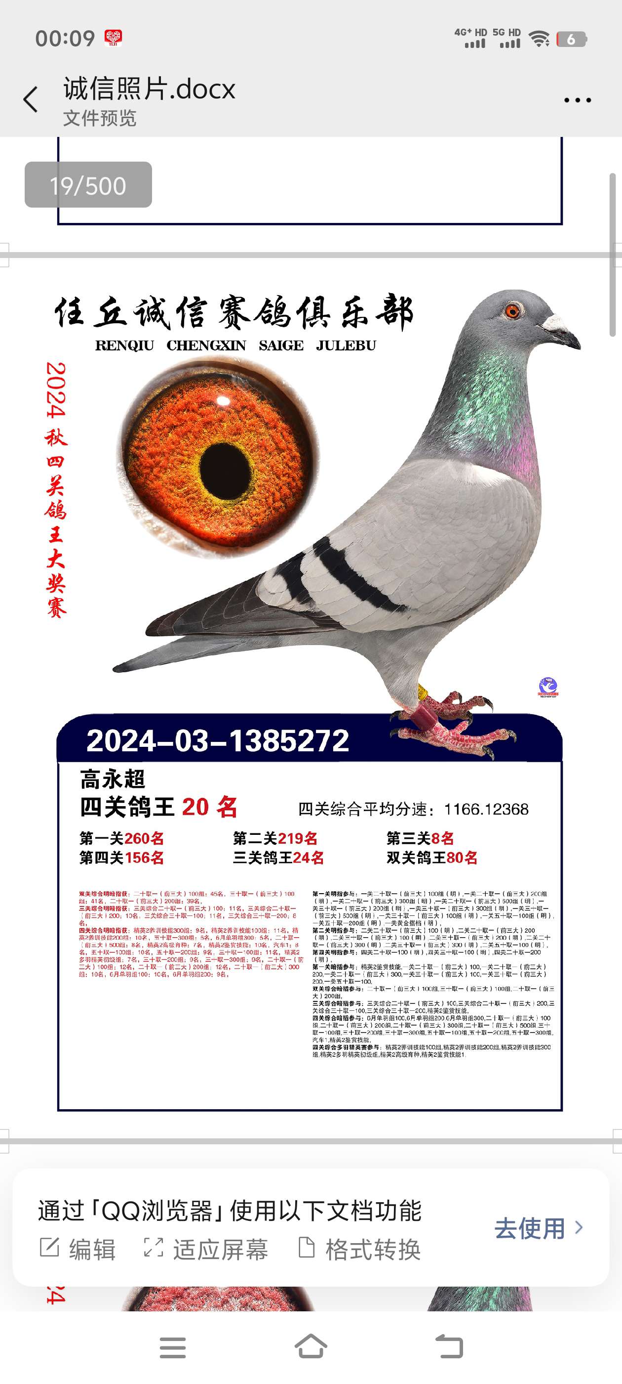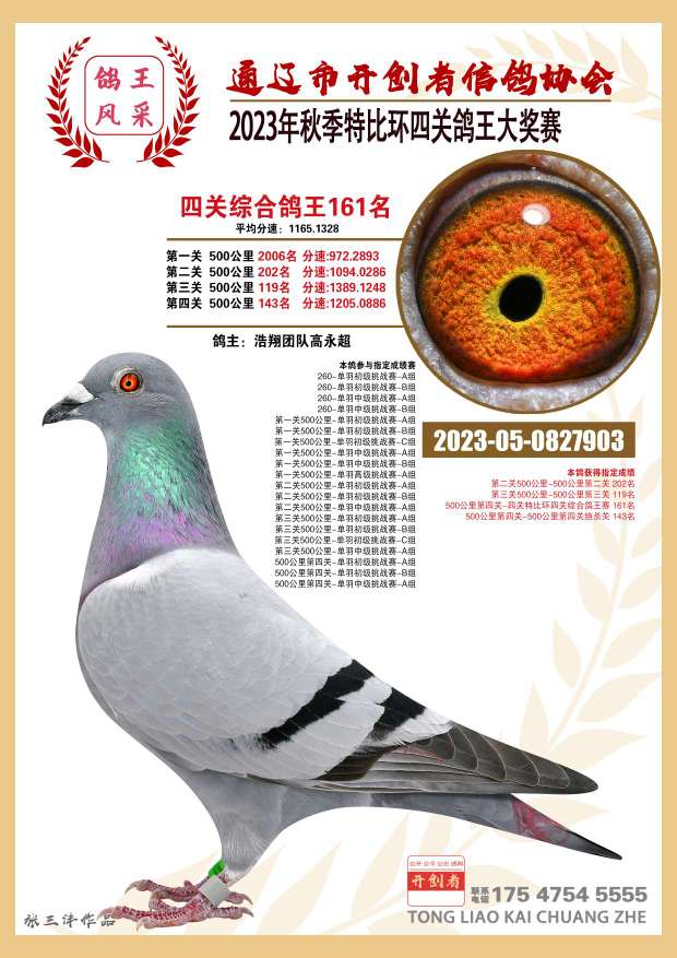 详细介绍:奶酪雌鸽500公里特比环8000多羽526名 父亲童丽君奶酪 240x098近亲回血直孙 母亲北京卡普奶酪 本身400米特比环安插重炮 当年比赛年龄小 鸽子羽毛没有换好 平辈鸽王10名单关8名 鸽王20名 鸽王161名 公棚决赛4名 下方有平辈图片 新疆海南不发货