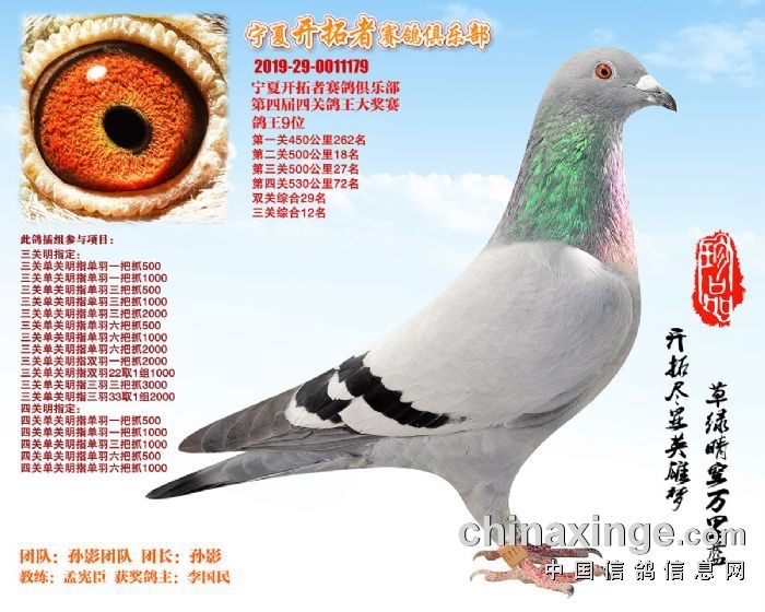 详细介绍:未开家套有2026年中国信鸽协会发布正规足环,足环证与鸽子一起发走,父亲2019年辽宁开拓者四关鸽王9名赢得奖金百万,母亲2020年四关综合33名,家族稳定发挥不用过多介绍,收到不满意全额退。