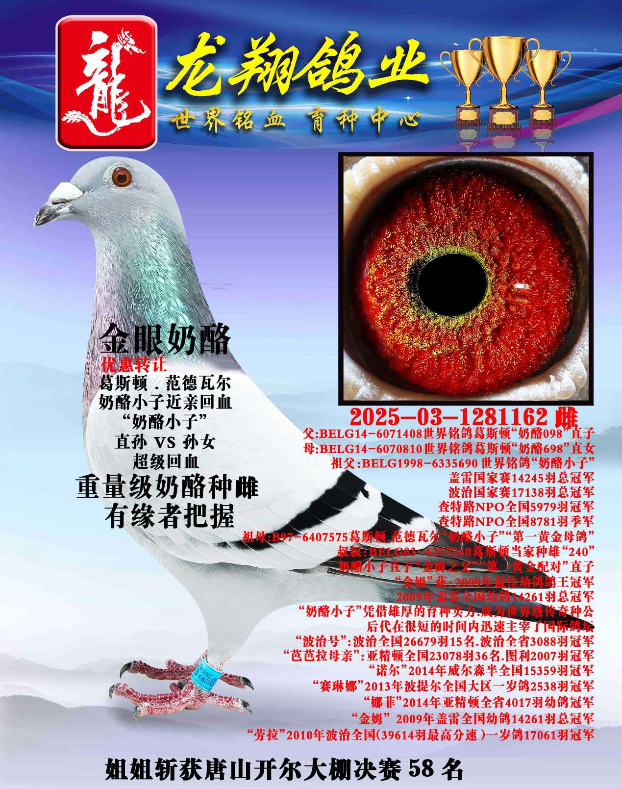 奶酪种雄圆环直出300-550公里7次百名之内 200公里138名 300公里48名 500公里22名 520公里25名 520公里16名 550公里61名 550公里35名 清棚种雄 孕育成绩鸽多羽 新疆海南不发货商家:风顺13383175454出价: ¥ 100.00/0次剩余时间:1天15小时37分 -