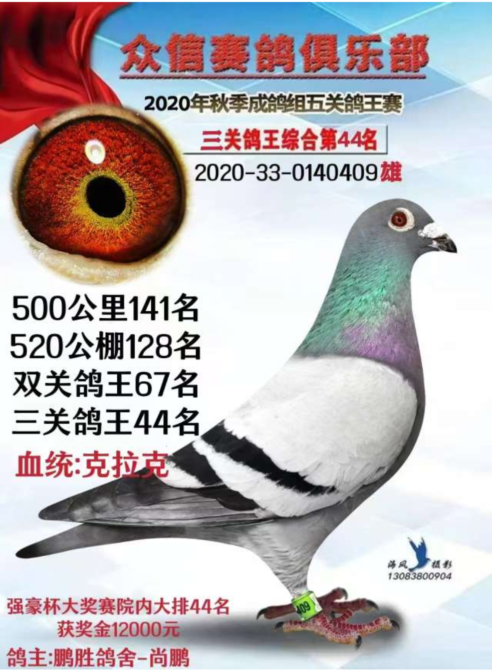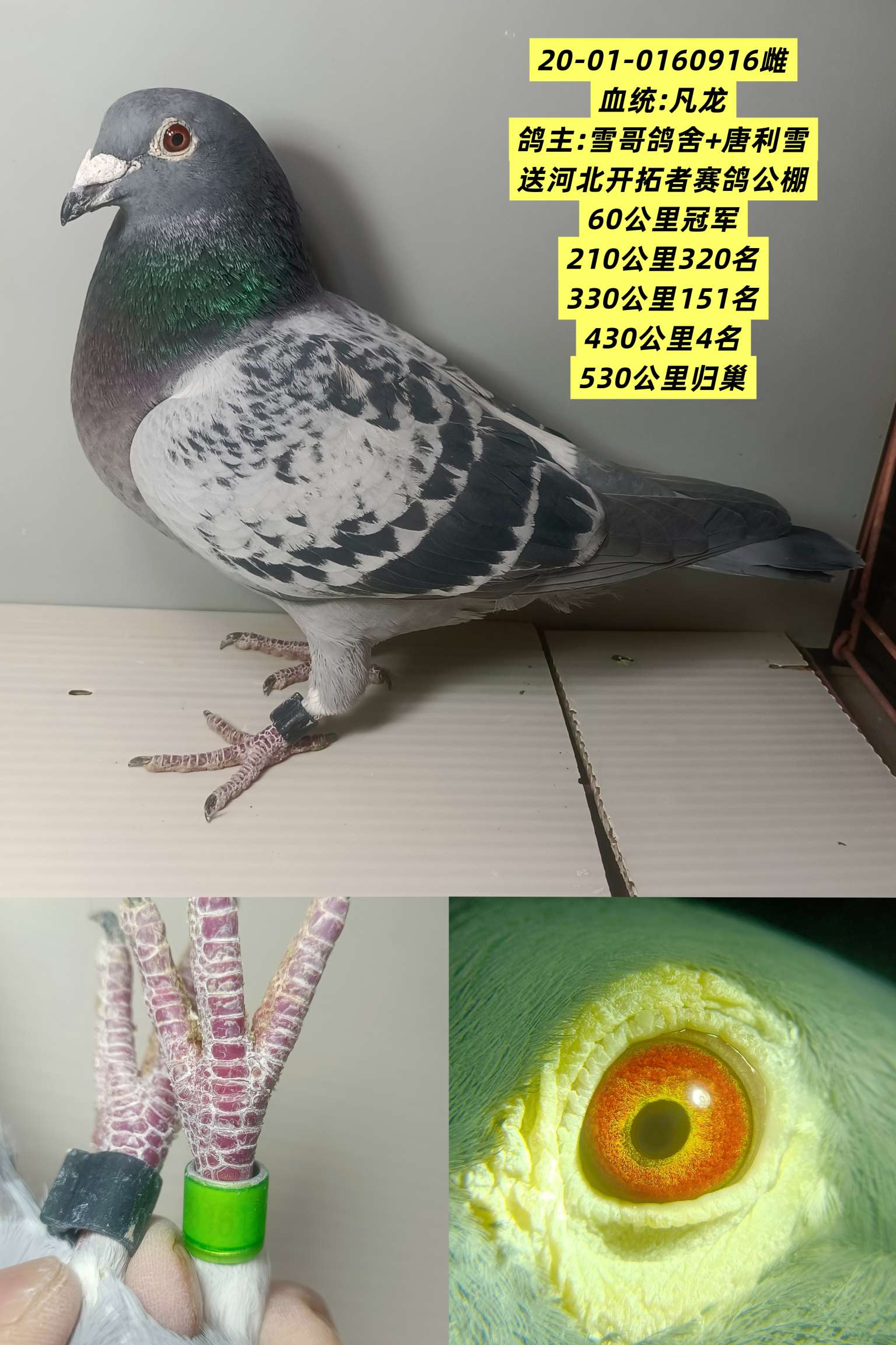唐山开尔鸽业长城公棚参赛雌鸽 参赛费10000元 预赛400公里1610名 手感眼睛非常到位 质量高级 育种极佳 血统参考他家盖比鲁迪 新疆海南不发货商家:风顺13383175454出价: ¥ 258.00/1次剩余时间:1天17小时6分 -