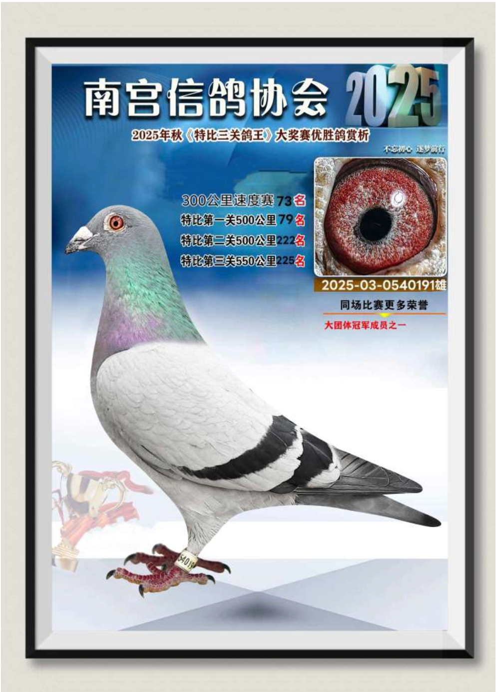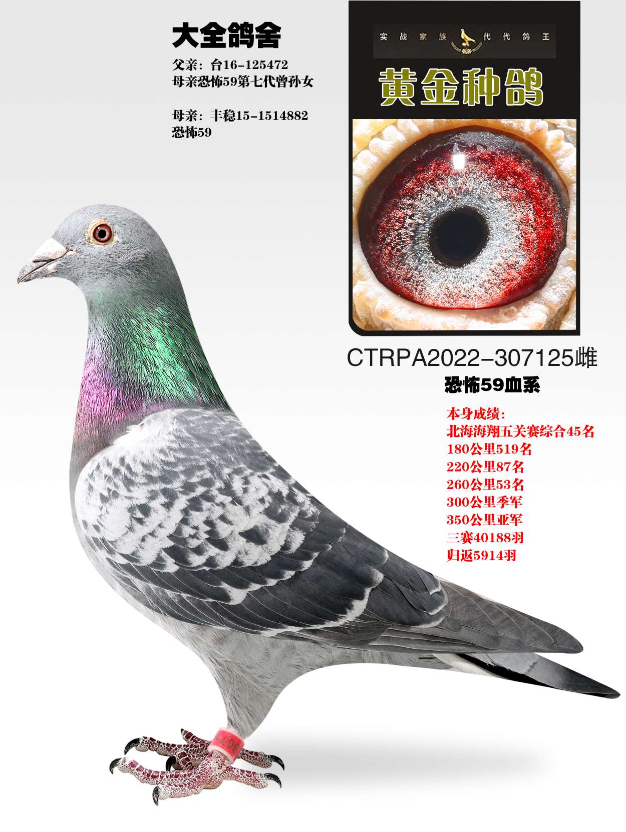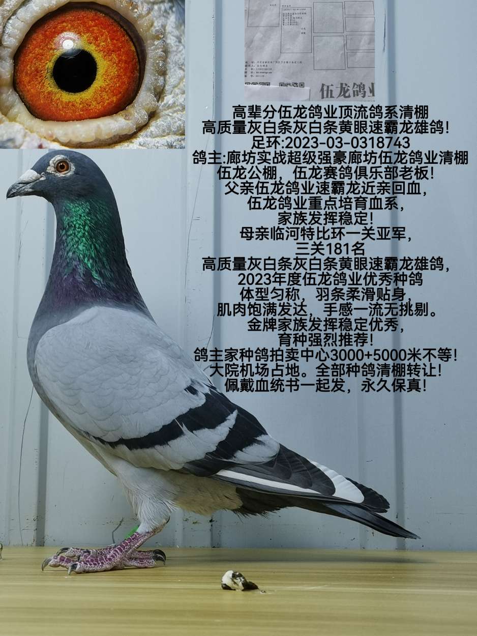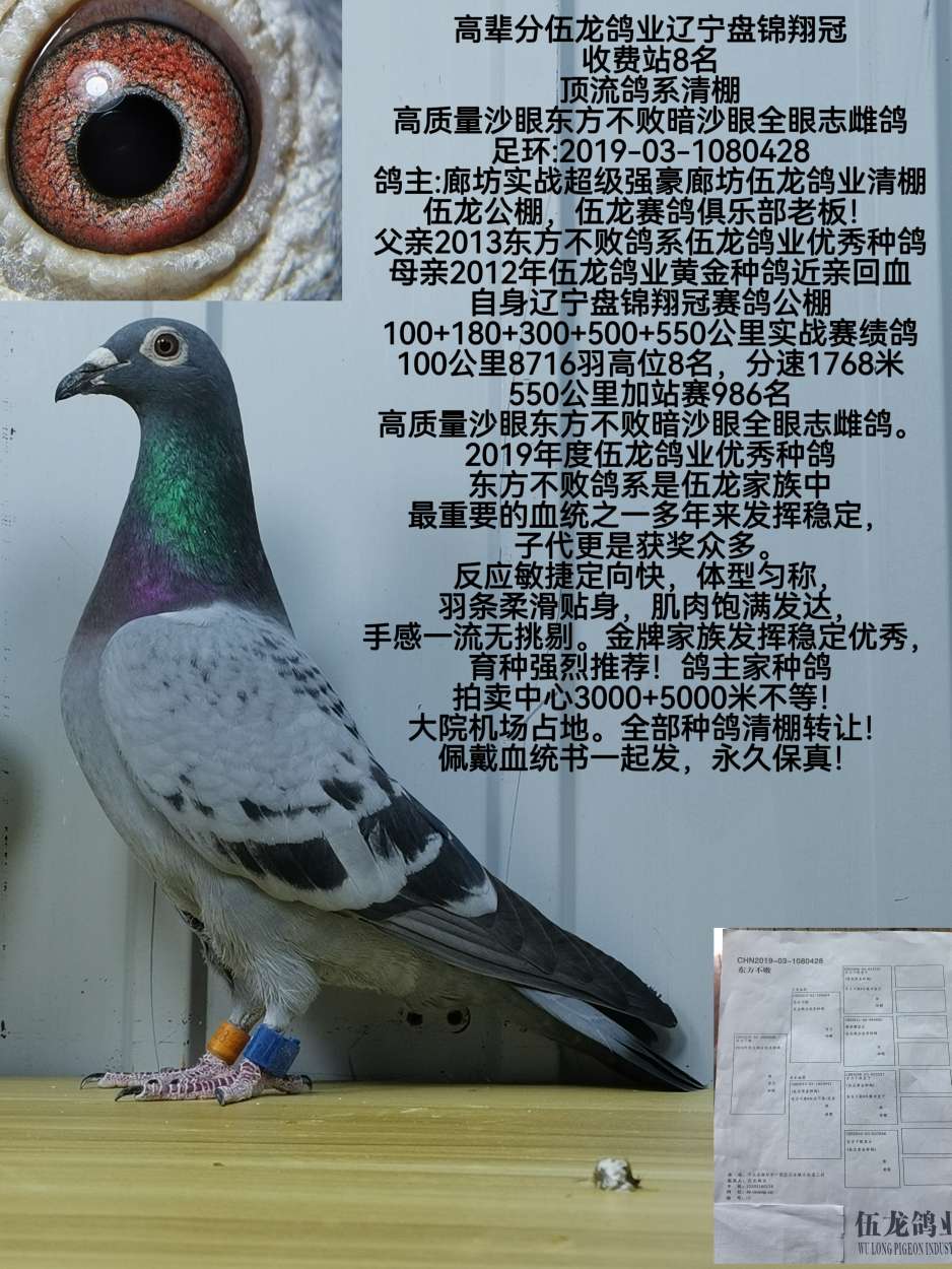 唐山开尔鸽业长城公棚参赛雌鸽 参赛费10000元 预赛400公里1610名 手感眼睛非常到位 质量高级 育种极佳 血统参考他家盖比鲁迪 新疆海南不发货商家:风顺13383175454出价: ¥ 258.00/1次剩余时间:0天7小时11分