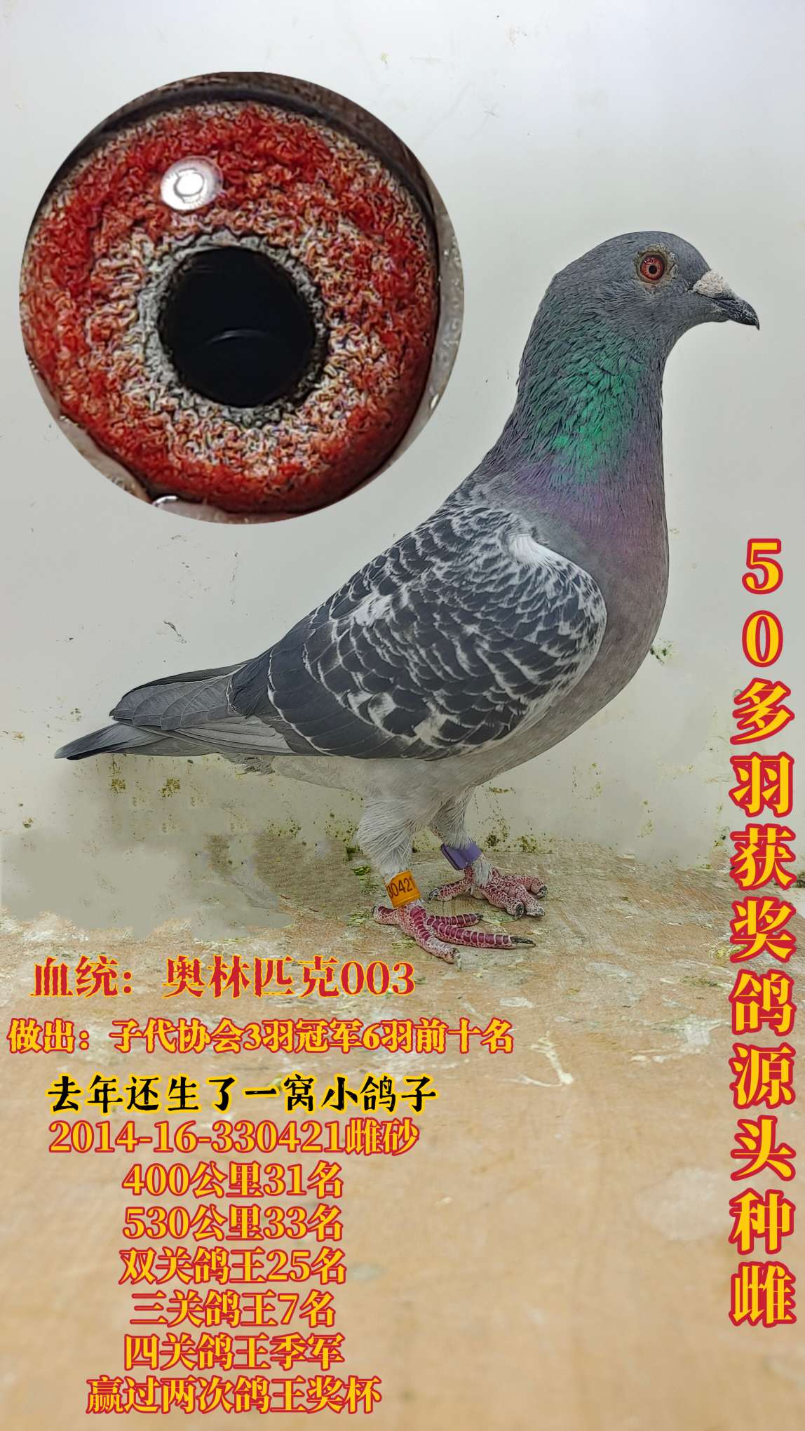 100%纯詹森功勋金母 艾迪詹森珍藏功勋金母 配对多羽雄鸽价格:888元 运费:88元 -