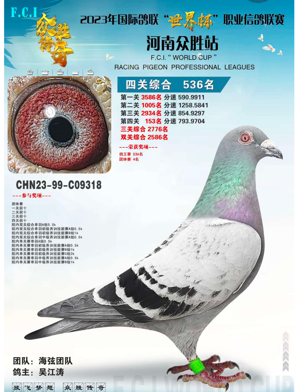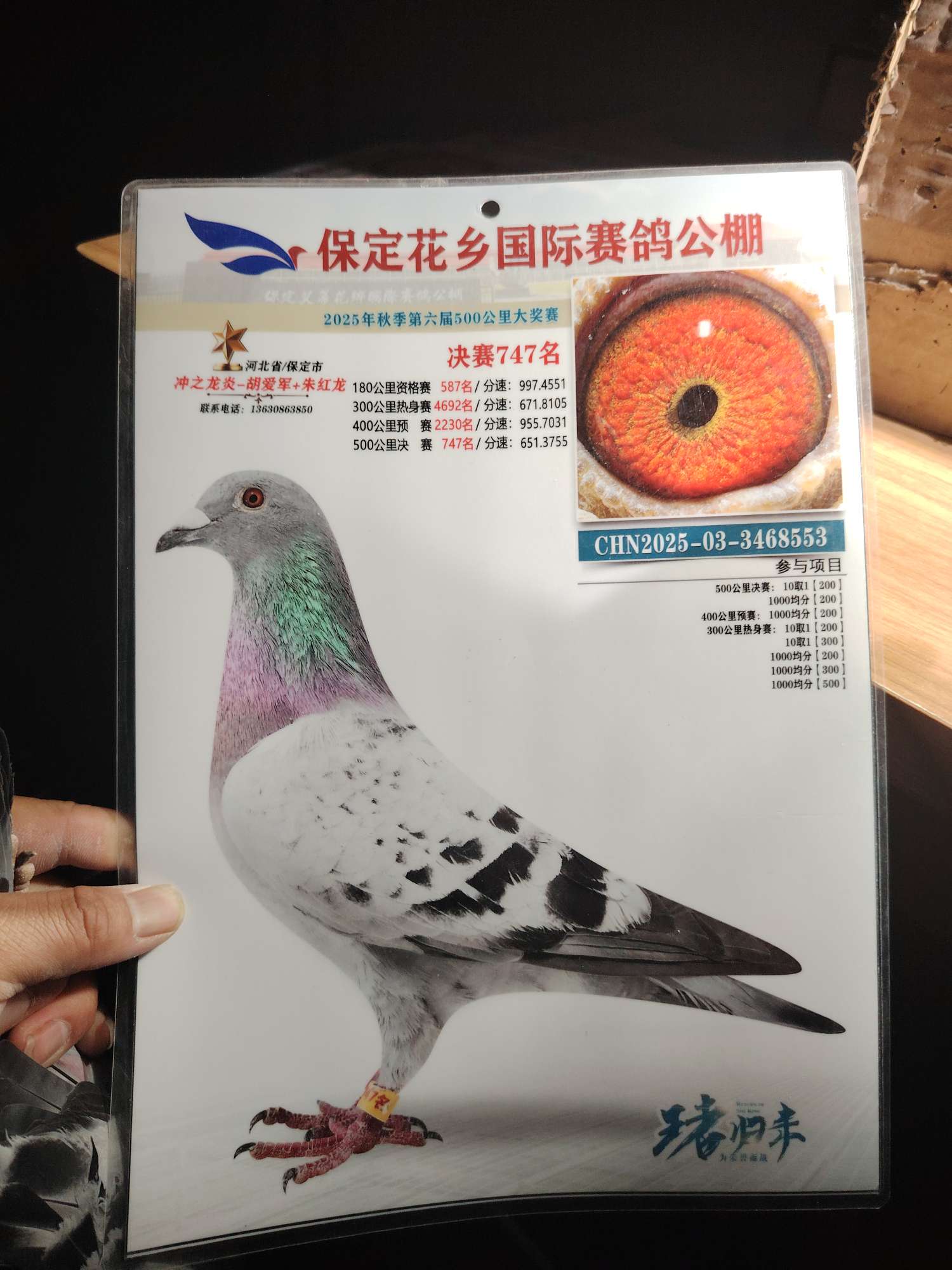 2023-16-0181584河南顶尚公棚参赛鸽 参赛费1299元 鸽主河南新乡何玉敏 应该是用媳妇名字参赛的 鸽子相当不错 中等体型上手轻盈紧凑 脾气暴躁 公鸽子 96公里2020名1095分速参赛11130羽163公里6906名参赛10119羽287公里1825名1205分速参赛9048羽375公里1729名1073分速参赛7322羽516公里决赛864名1095分速参赛5197羽决赛取900名获奖8000元预赛指定200元决赛指定200元海南新疆不发货商家:商丘串串鸽业19562970063出价: ¥ 190.00/0次剩余时间:4天3小时46分 -