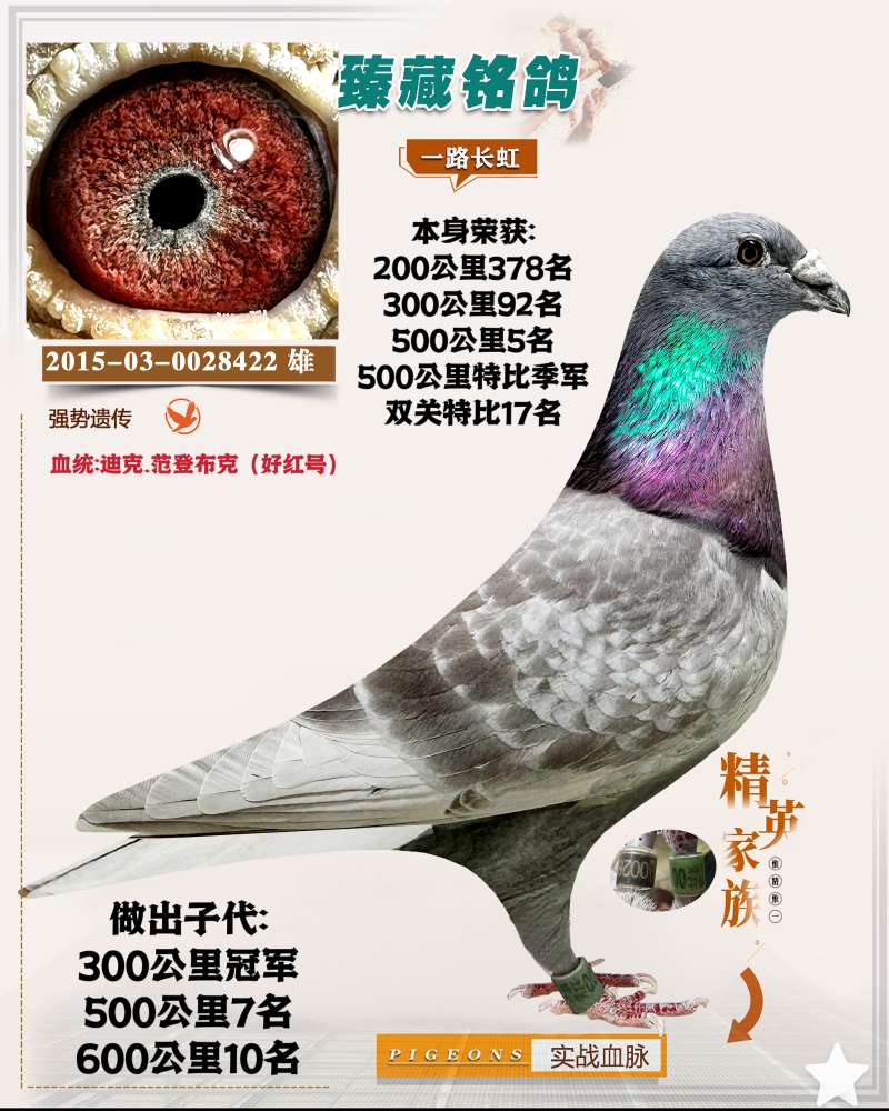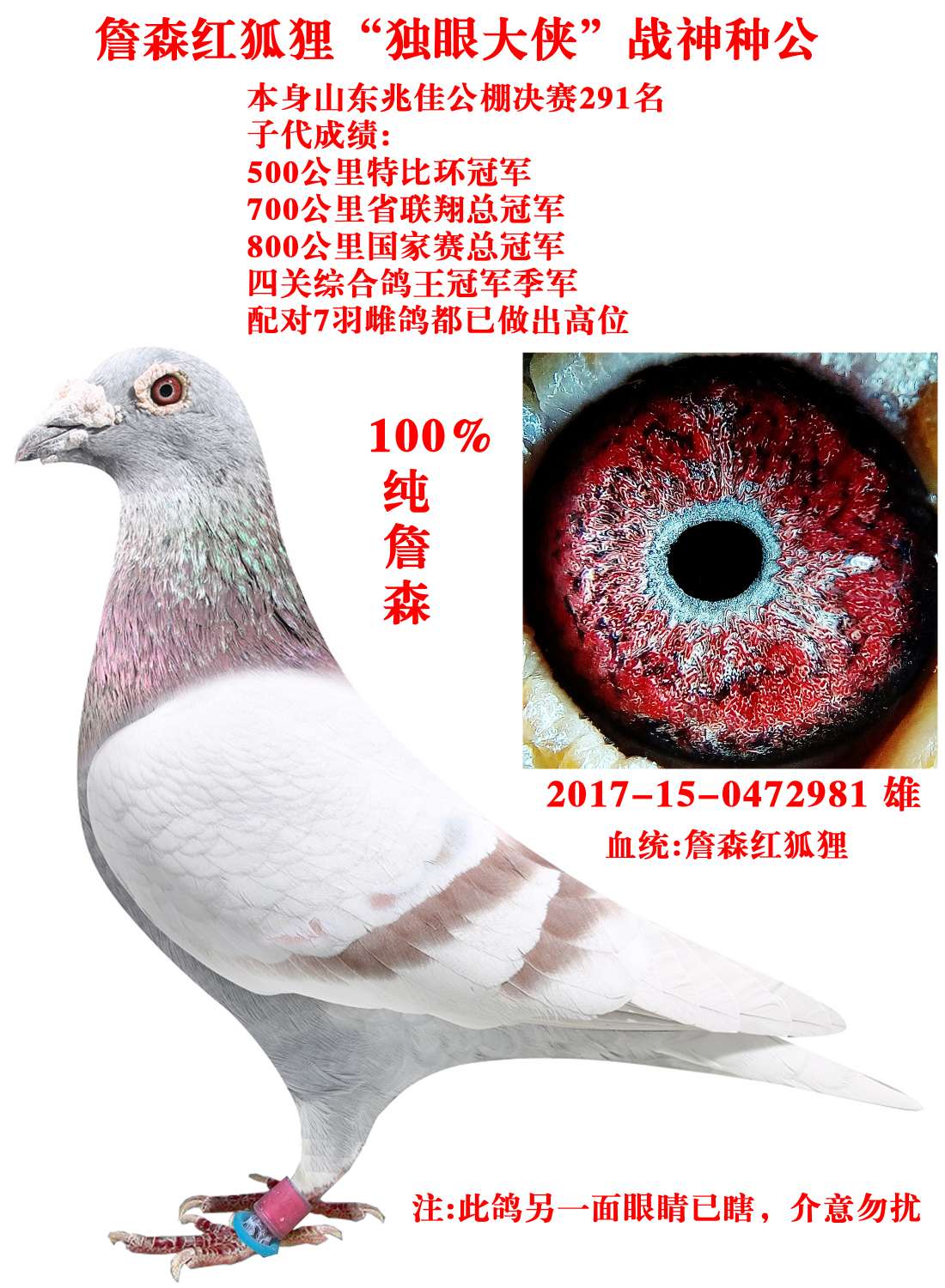 福利回馈鸽友詹森红狐金环99珍藏种公!手感骨架各方面质量超棒价格:178元 运费:60元 -