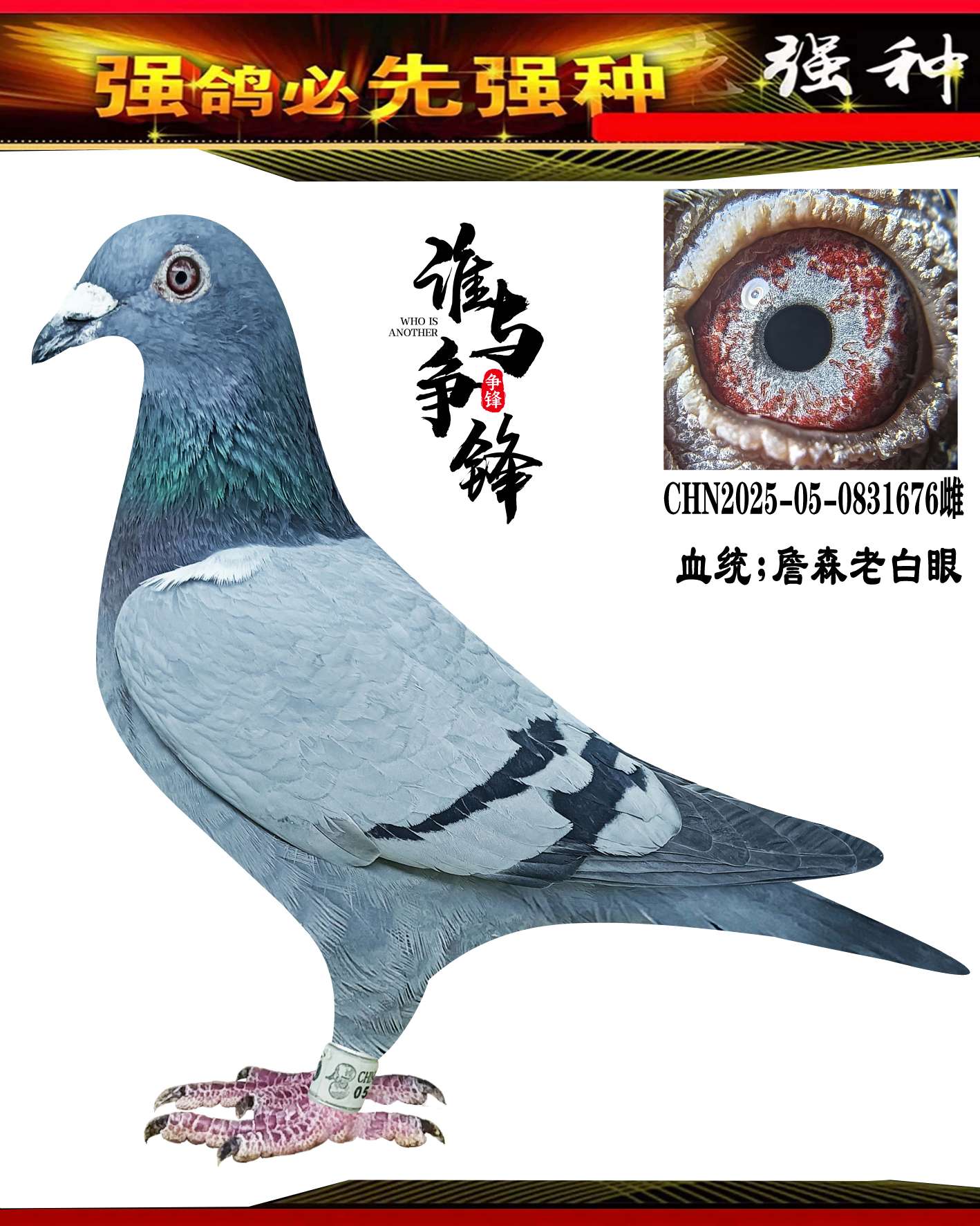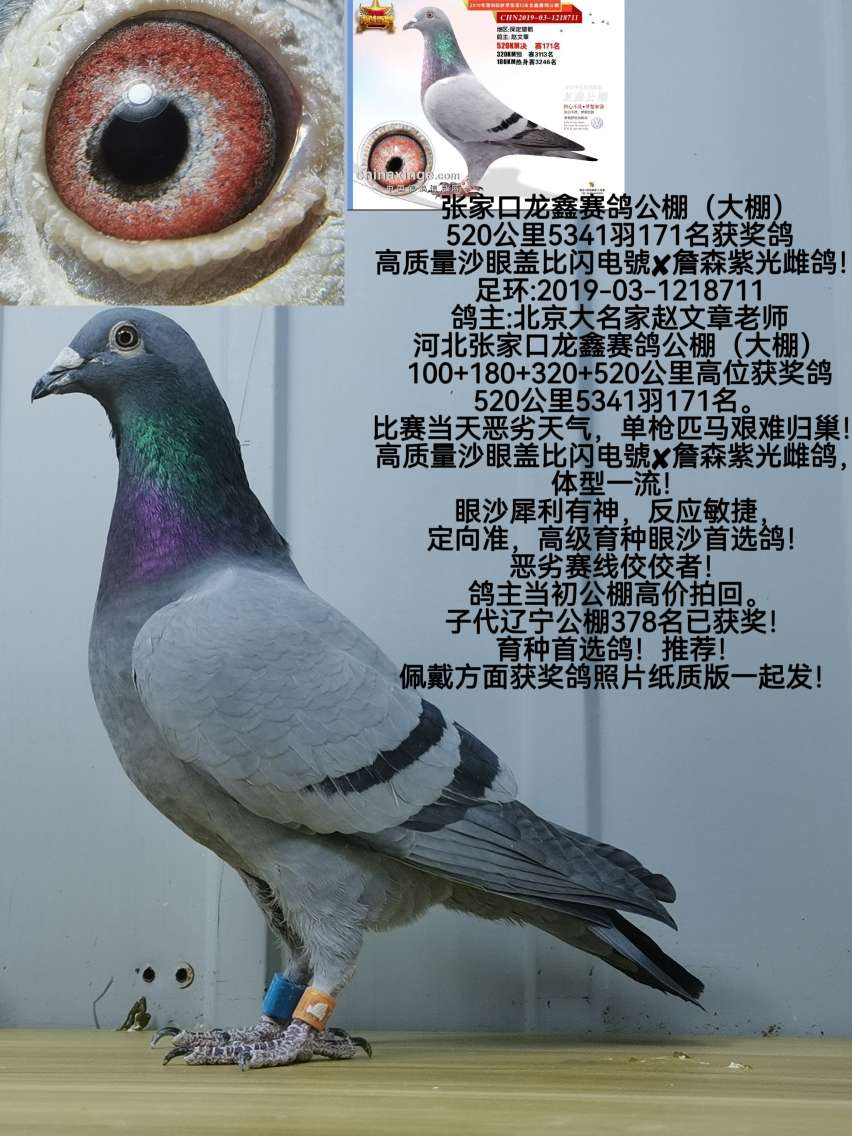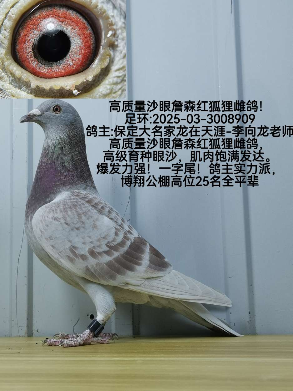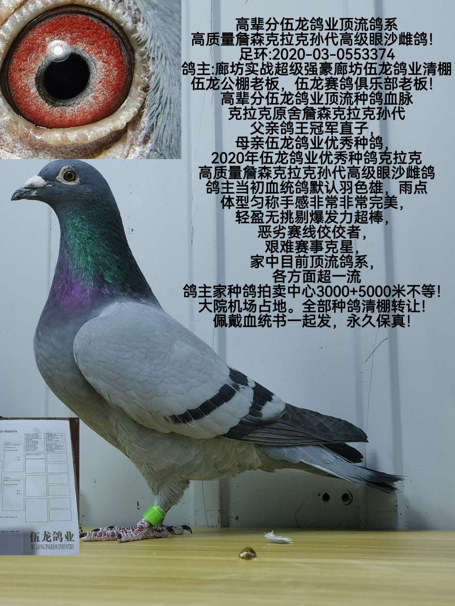 高辈分伍龙鸽业顶流鸽系高质量詹森克拉克孙代高级眼沙雌鸽!金牌价格:1000元 运费:0元