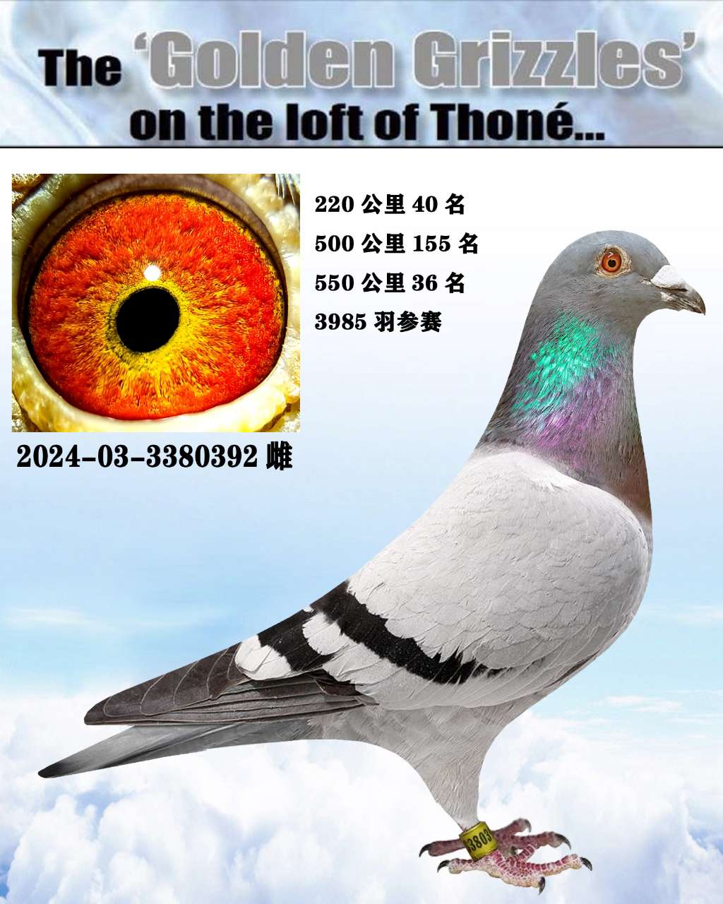 詹森对周维家红狐,鸽王40名 子代今年信合公棚决赛300多名价格:1500元 运费:35元 -