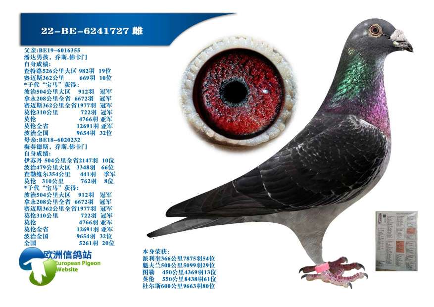 乔斯佛卡门原舍珍藏金母 本身多次大羽数高位成绩 附带原舍血统证书和翻译证书 子代300-800公里多羽高位成绩 高级种鸽眼,育种价值极高 新疆海南不发货商家:盛世启航-吴岩辉出价: ¥ 666.00/1次剩余时间:1天5小时59分 -