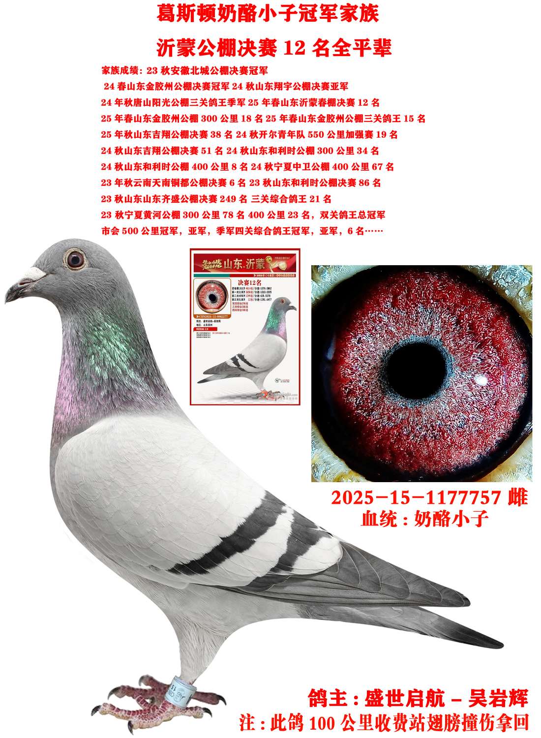 胡本特留种鸽 平辈单关季军🥉 平辈子代鸽王7名价格:299元 运费:0元 -