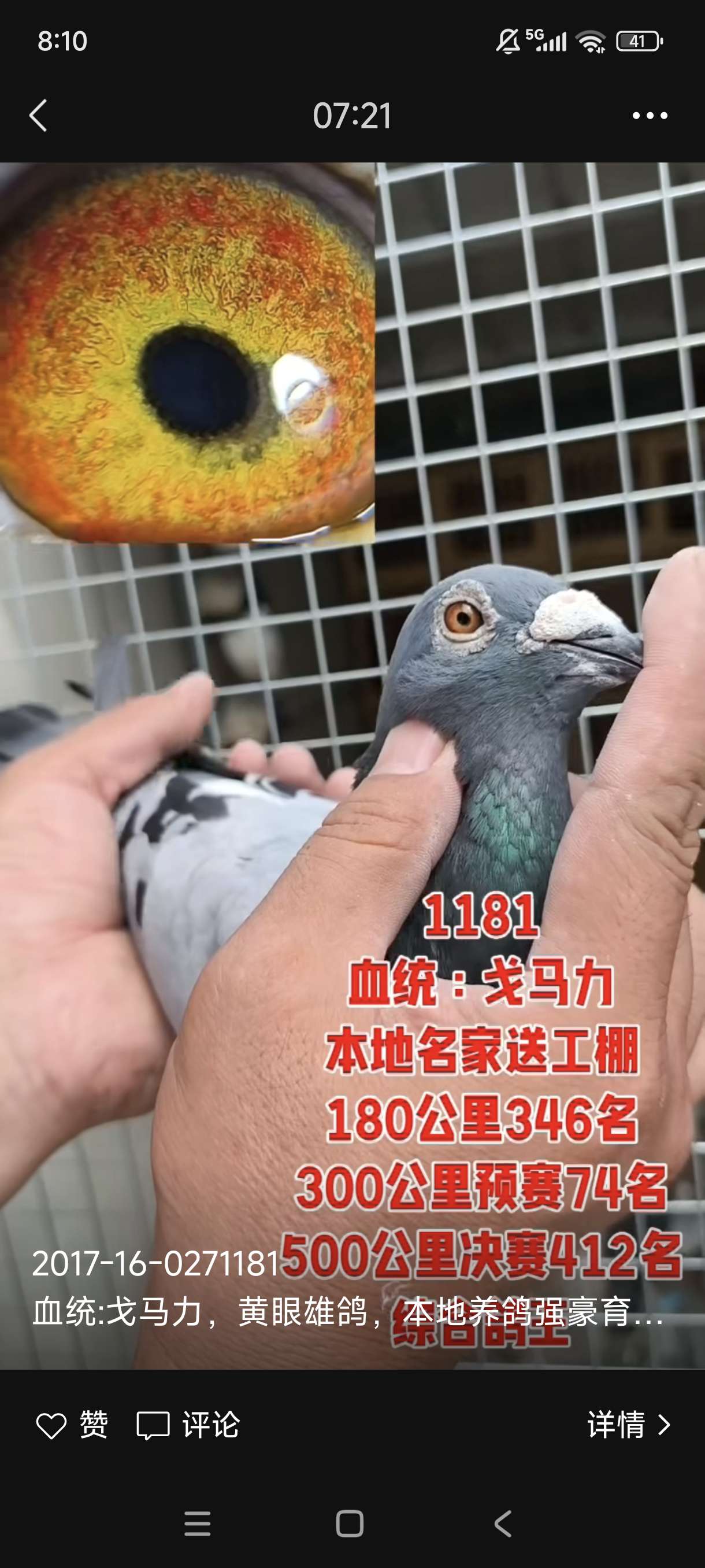 1181工棚成绩鸽毛腿戈马力价格:229元 运费:39元 -