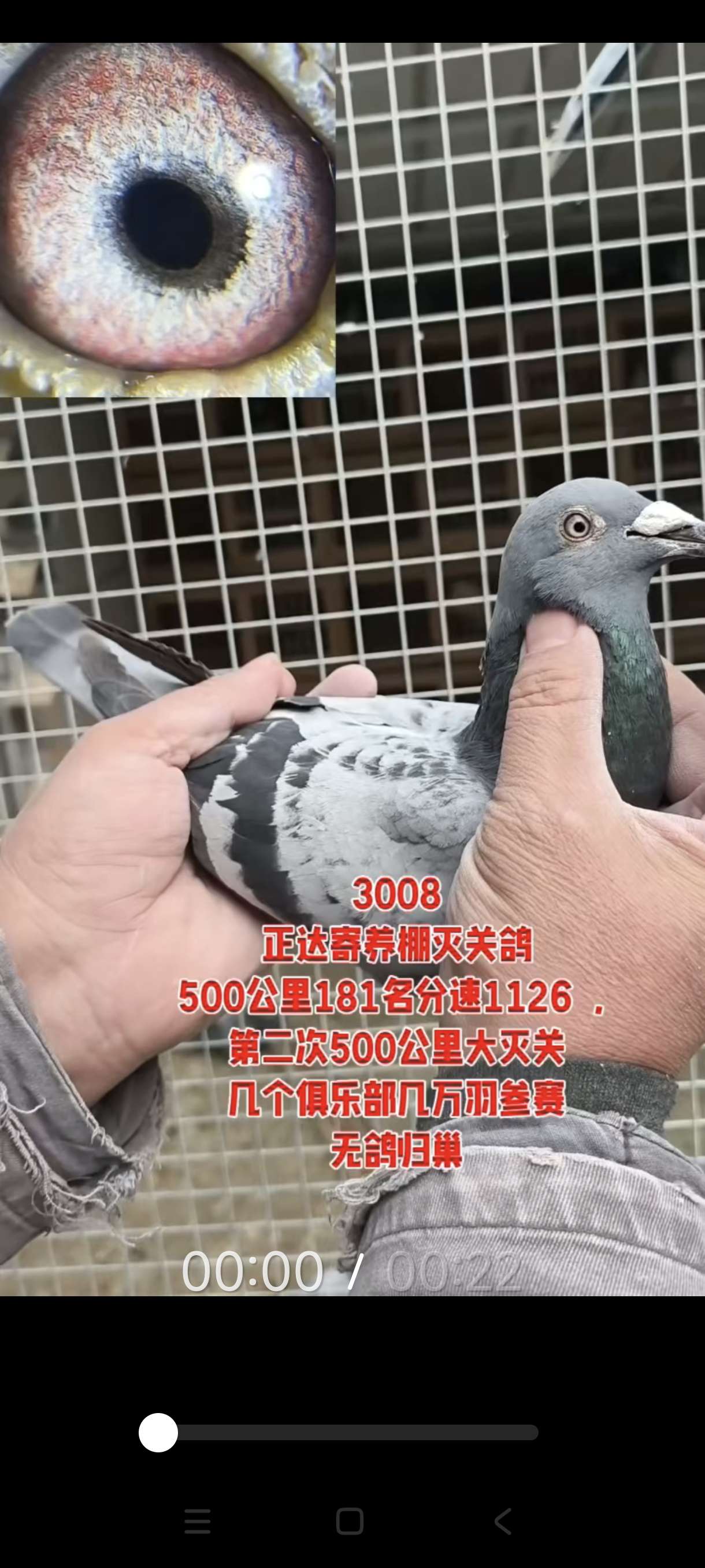 2025-10-0382517江苏银石寄养棚参赛鸽 3000元特比环 不算寄养费 参赛名张钧 鸽主是本地赛鸽名家淼鑫鸿运聂海峰 鸽主每年高价引进种鸽 多个寄养棚团长 此鸽是银石寄养棚鸽王8名的全平辈 血统克拉克配飞戈 自身炮弹体型前胸宽 质量高级 母鸽子 137公里1002名1255分速参赛4477羽136公里572名1139分速参赛4412羽200公里898名1233分速参赛4336羽247公里1620名1172分速参赛3985羽496公里一关1179名08分速参赛3598羽二关迟归 鸽主拿回海南新疆不发货商家:商丘串串鸽业19562970063出价: ¥ 20.00/1次剩余时间:4天7小时50分 -