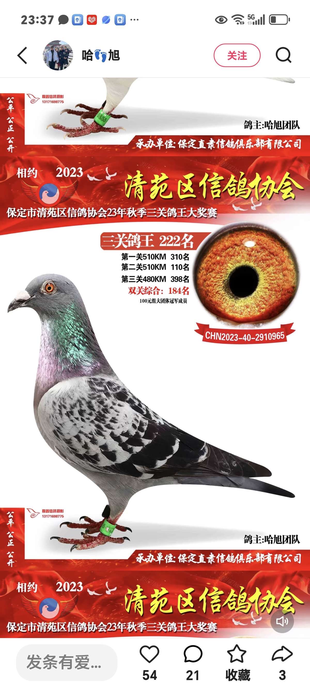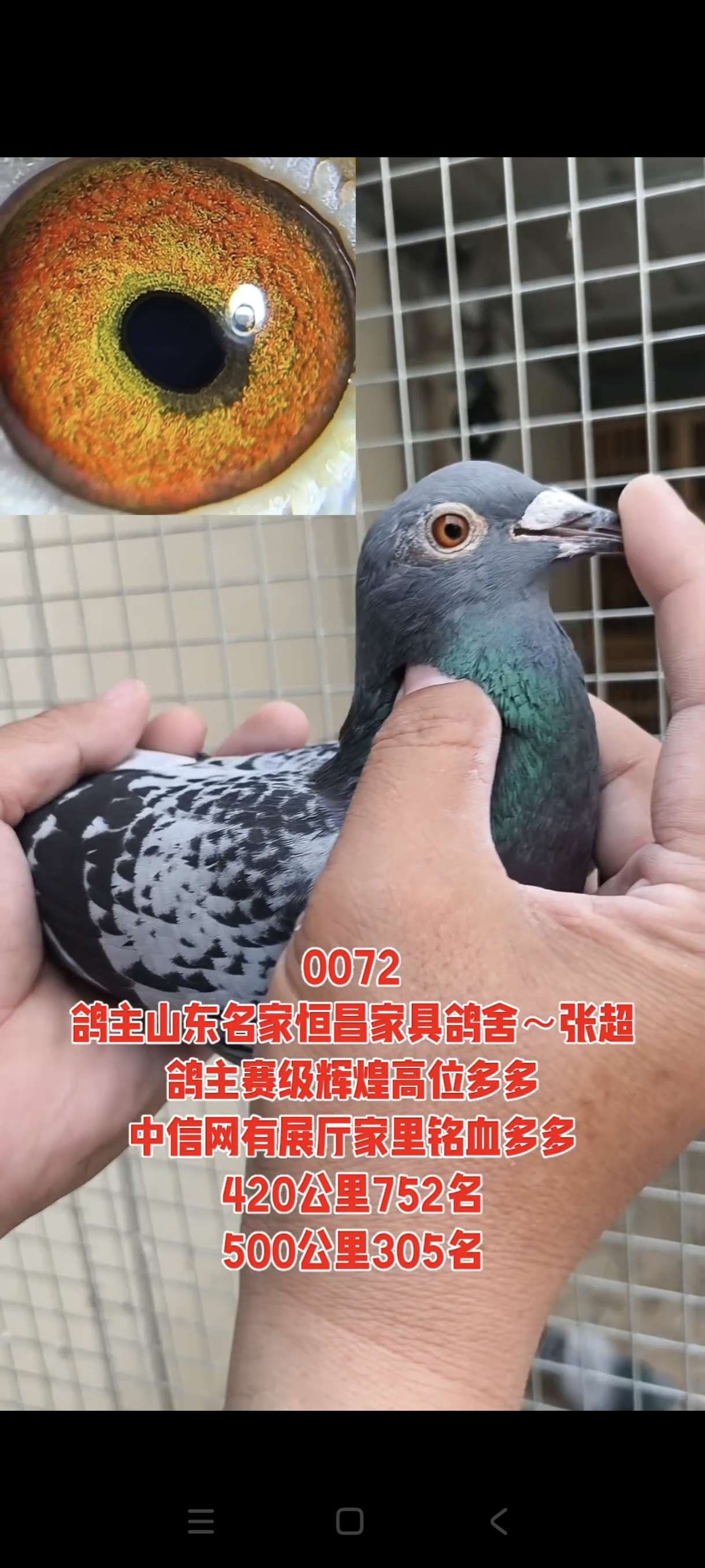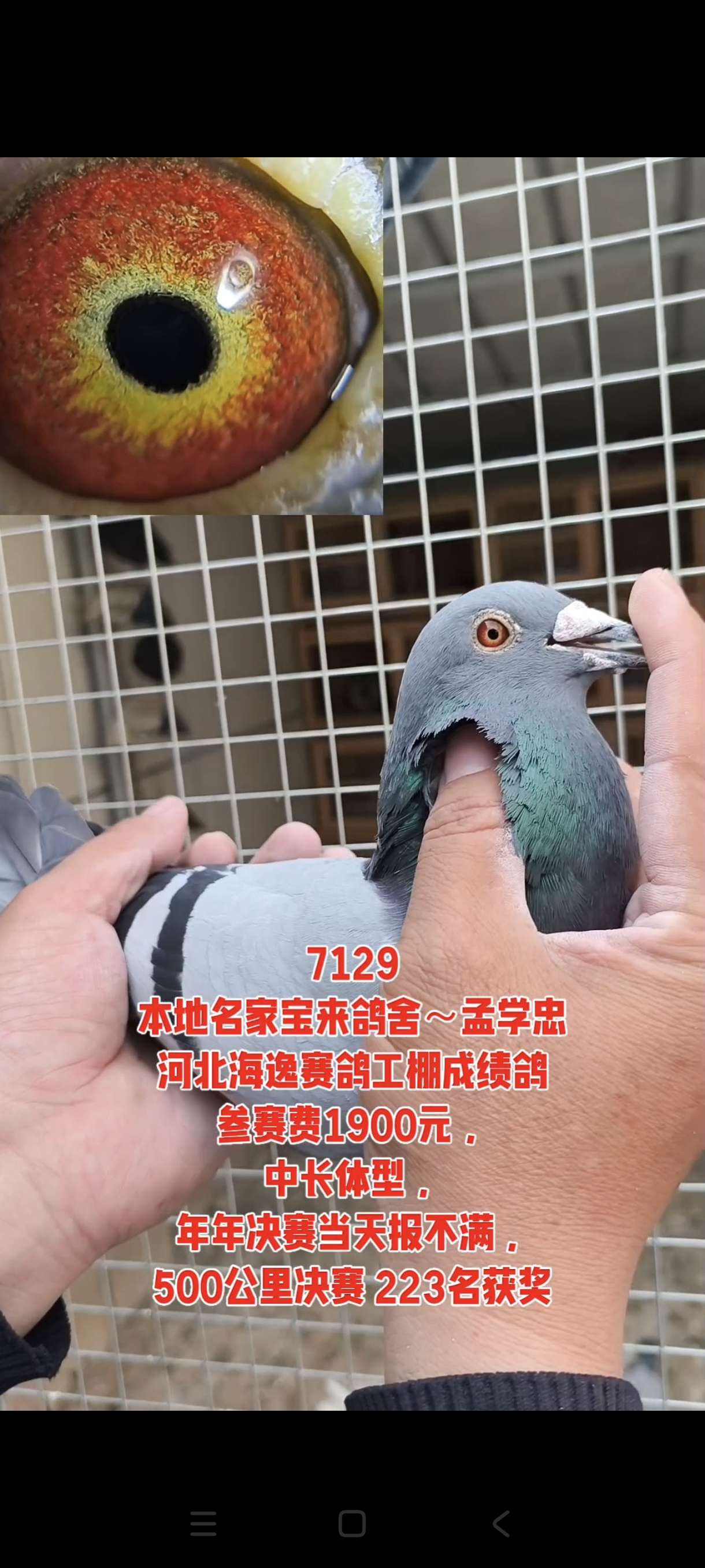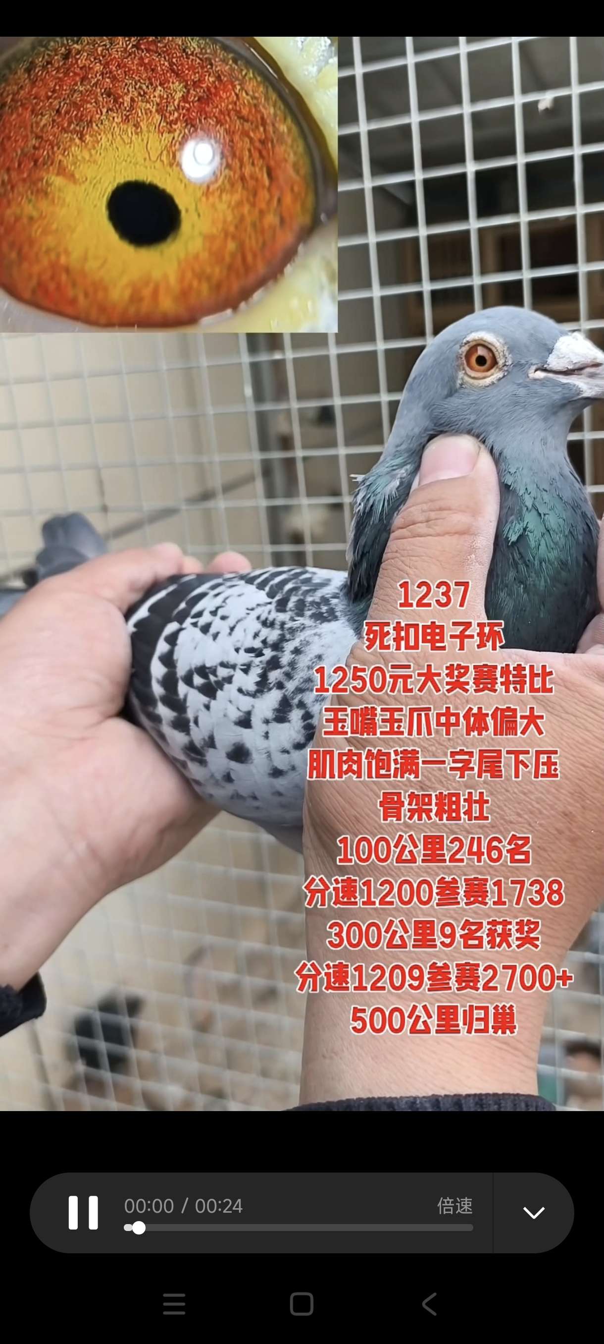 2023-16-0181584河南顶尚公棚参赛鸽 参赛费1299元 鸽主河南新乡何玉敏 应该是用媳妇名字参赛的 鸽子相当不错 中等体型上手轻盈紧凑 脾气暴躁 公鸽子 96公里2020名1095分速参赛11130羽163公里6906名参赛10119羽287公里1825名1205分速参赛9048羽375公里1729名1073分速参赛7322羽516公里决赛864名1095分速参赛5197羽决赛取900名获奖8000元预赛指定200元决赛指定200元海南新疆不发货商家:商丘串串鸽业19562970063出价: ¥ 190.00/0次剩余时间:4天18小时5分 -