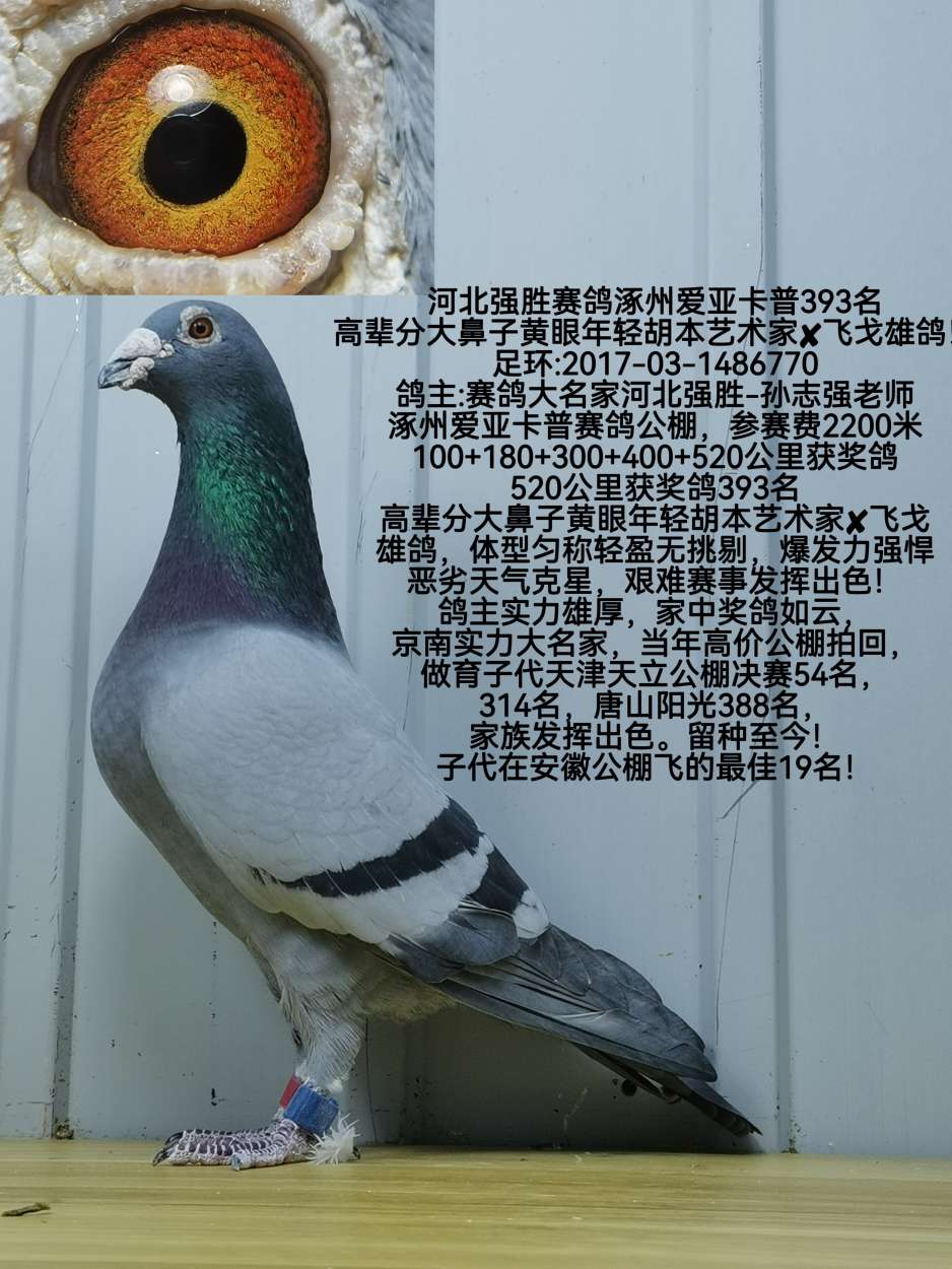 河北强胜赛鸽涿州爱亚卡普393名高辈分大鼻子黄眼年轻胡本艺术价格:800元 运费:0元