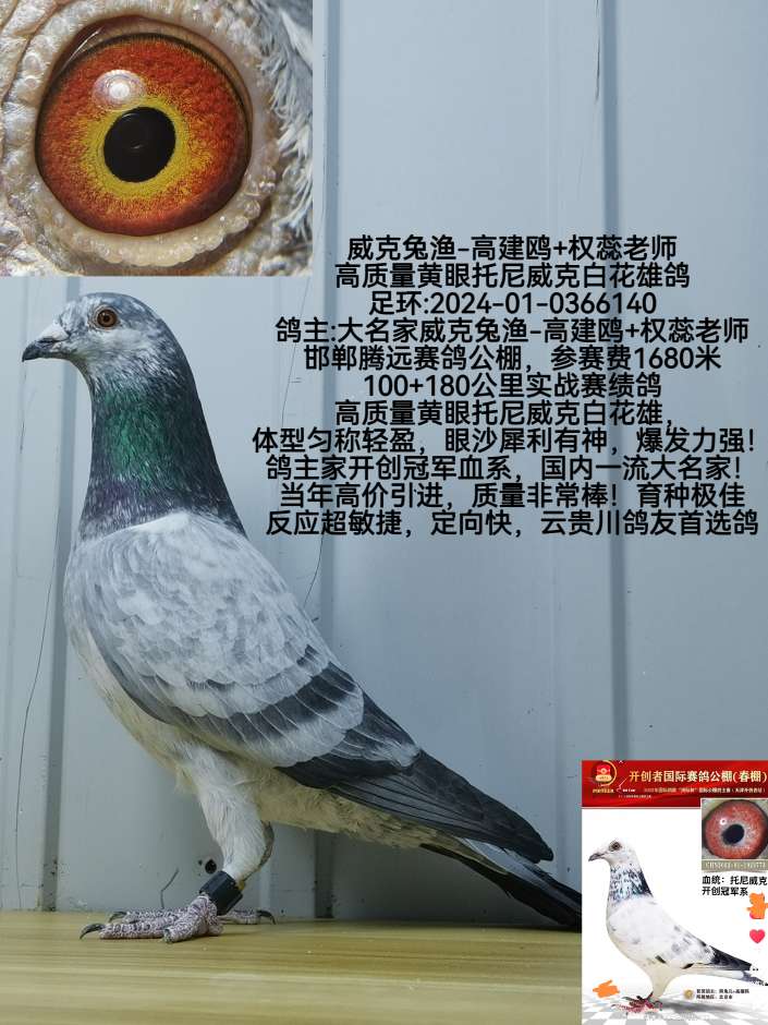 威克兔渔-高建鸥+权蕊老师高质量黄眼托尼威克白花雄鸽!北京鸽价格:800元 运费:0元 -