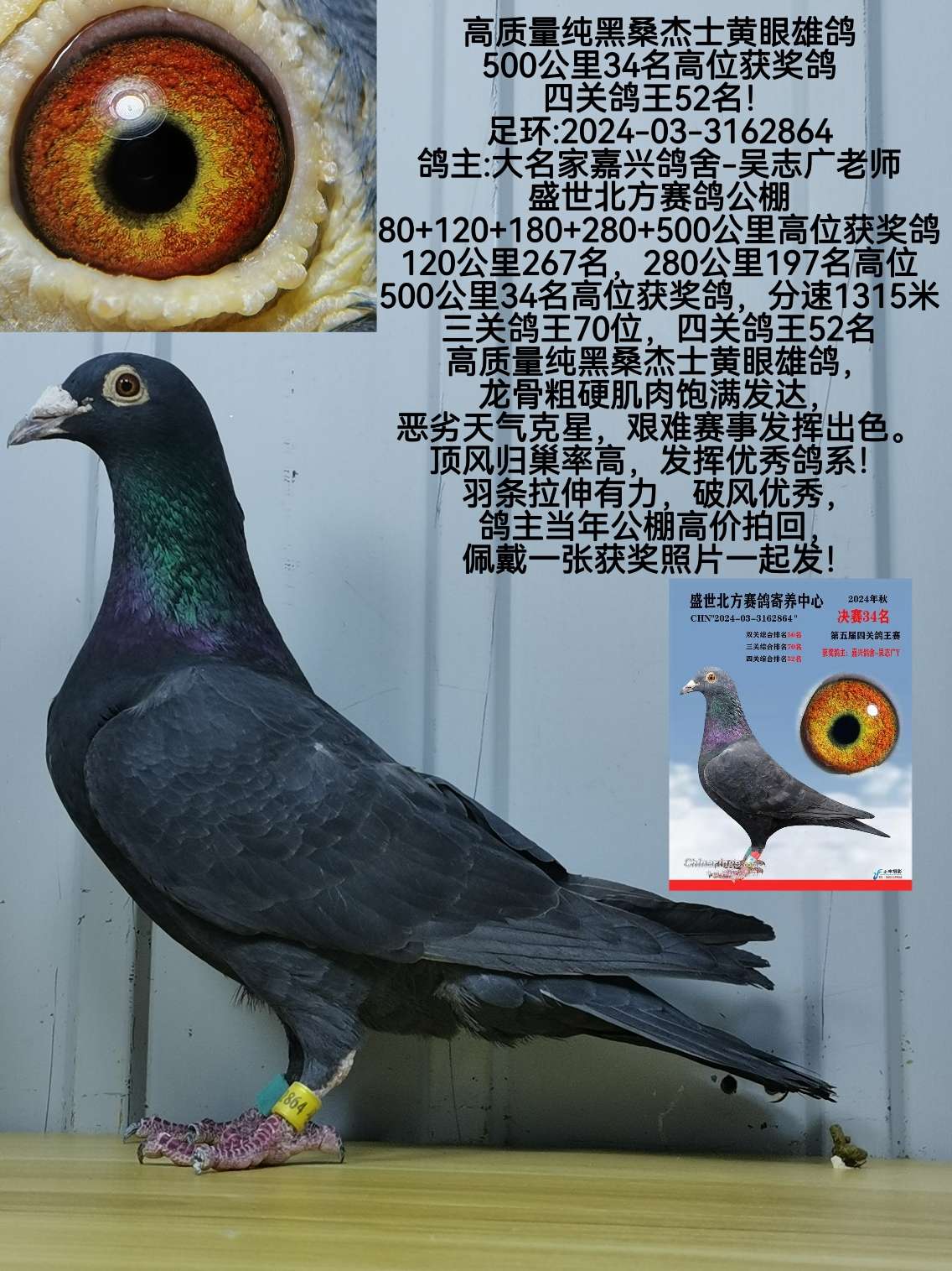 100%纯血盖比实战种雌 本身多次比赛成绩鸽王58位 新疆海南不发货 商家:盛世启航-吴岩辉出价: ¥ 200.00/0次剩余时间:1天20小时33分 -