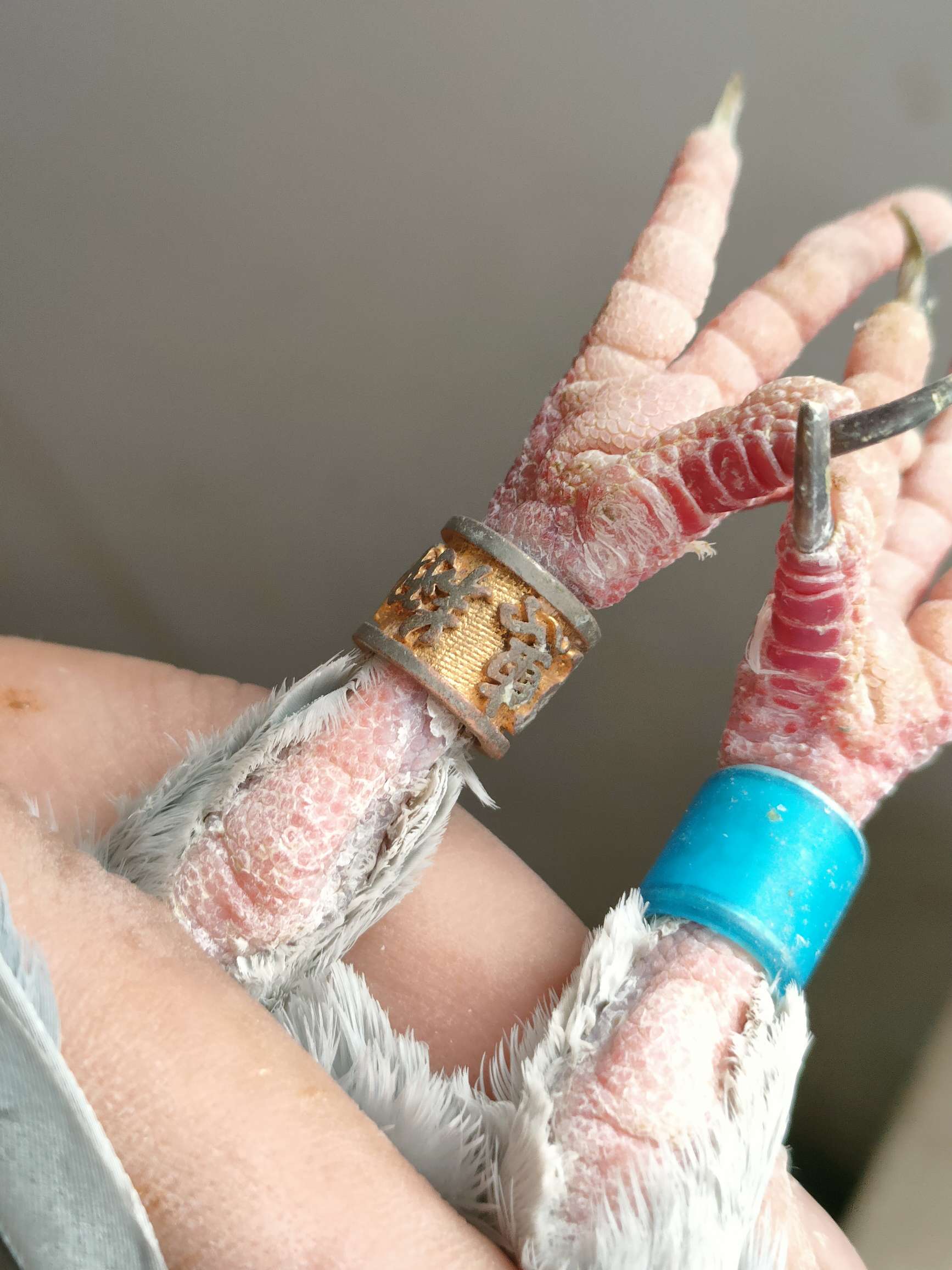 高质量灰白条桑杰士第一武士沙眼雄鸽雍阳赛鸽俱乐部大奖赛特比环价格:138元 运费:30元 -