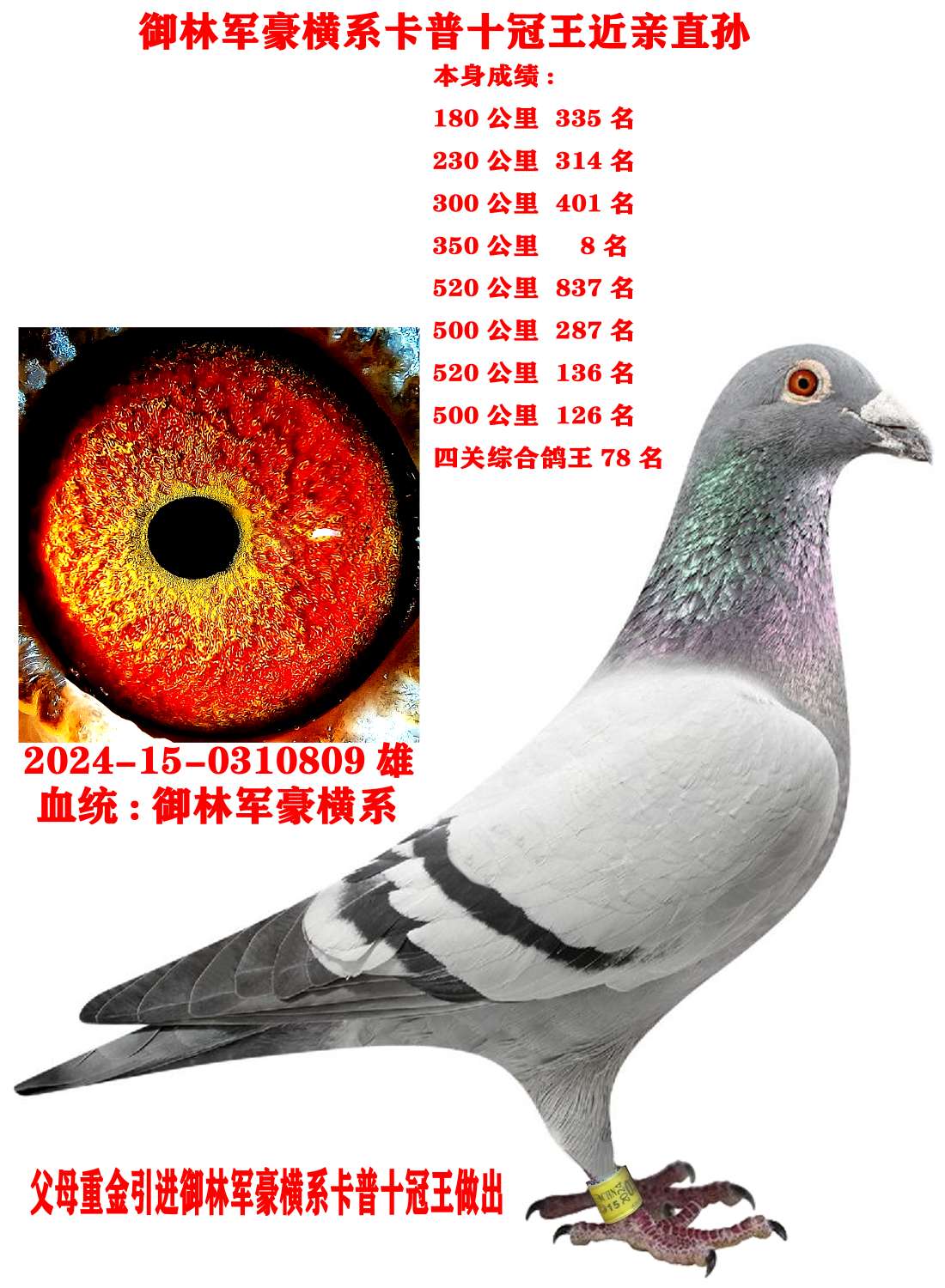 御林军豪横系实战种公 本身斩获四关鸽王78名价格:330元 运费:50元