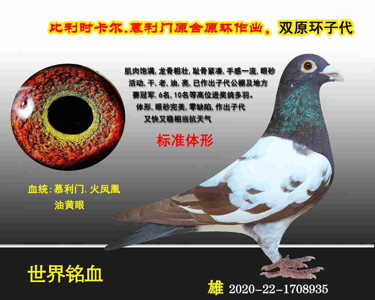 世界铭血:慕利门.火凤凰血统,油黄眼,标准体形,体形完美。