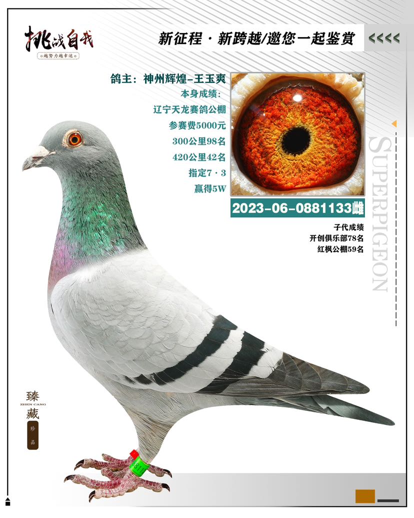 辽宁天龙赛鸽公棚 鸽主神州辉煌-王玉爽 参赛费5000元 300公里98名 420公里42名