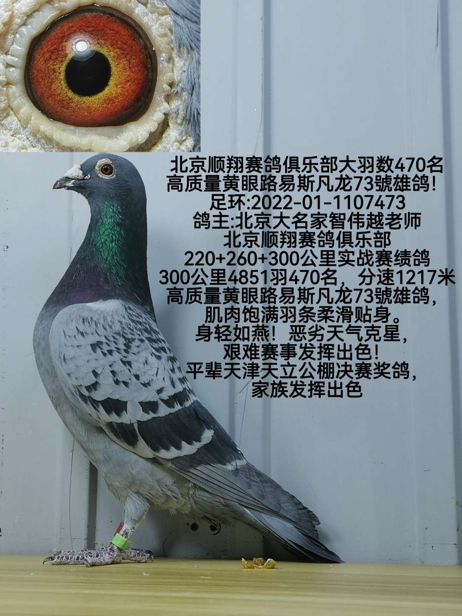 北京顺翔赛鸽俱乐部大羽数470名高质量黄眼路易斯凡龙73號雄鸽!北京鸽友清棚出售所有种鸽一羽不留,工薪价格转让,所见即所得,回馈新老鸽友!