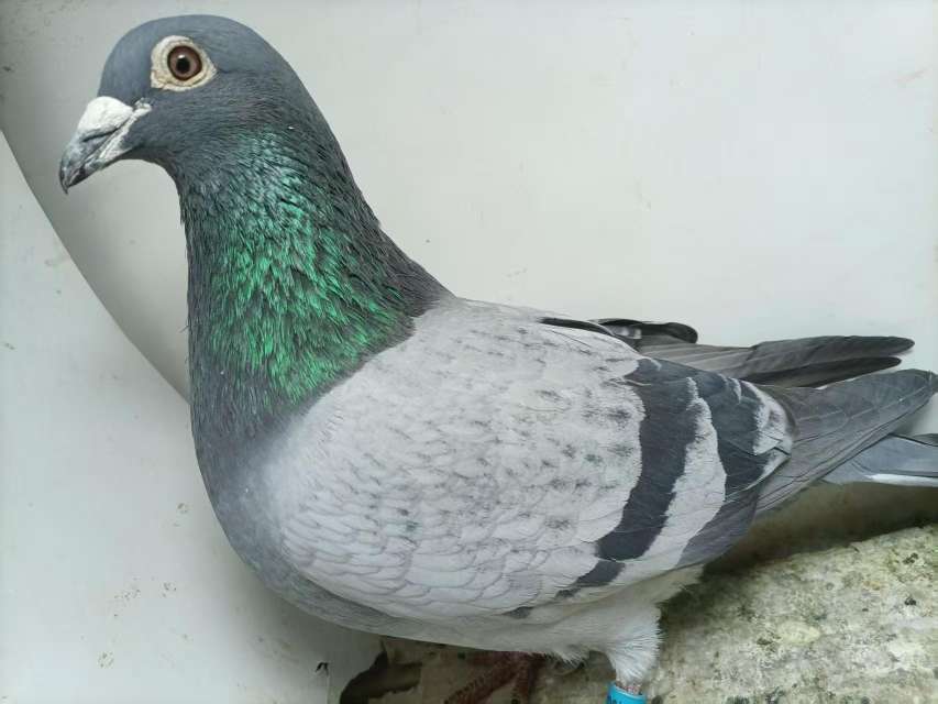 湖北赛鸽名家闪电号田芳多次高位成绩鸽,飞过700公里11名,2021-17-0022299,灰喷点砂眼雄,小体,皮球型,骨架肌肉一流
