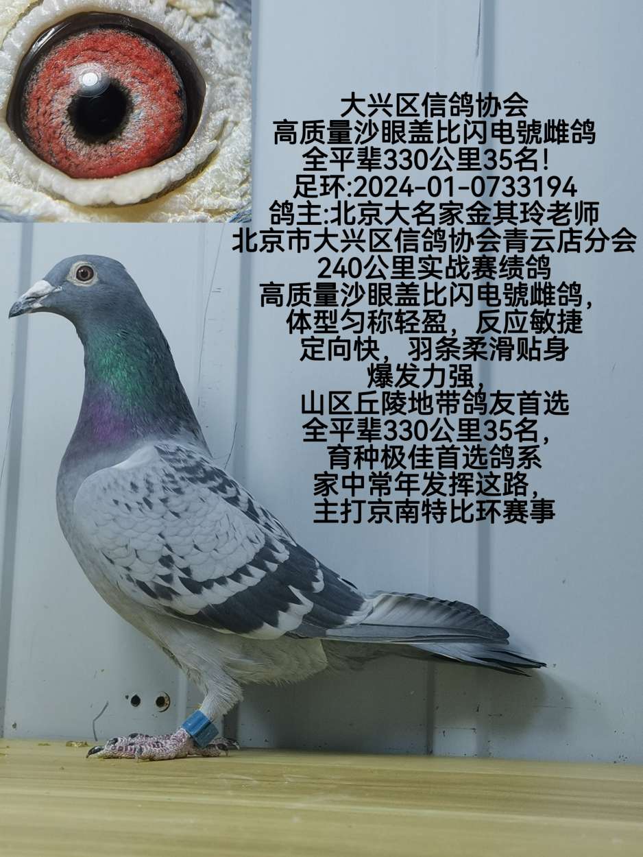 大兴区信鸽协会高质量沙眼盖比闪电號雌鸽全平辈330公里35名!北京鸽友金牌种鸽家族清棚放漏!实战铭血臻鸽专场!福利拉满~竞拍无忧~血统保真~好鸽带回家~所见即所得,回馈新老鸽友!
