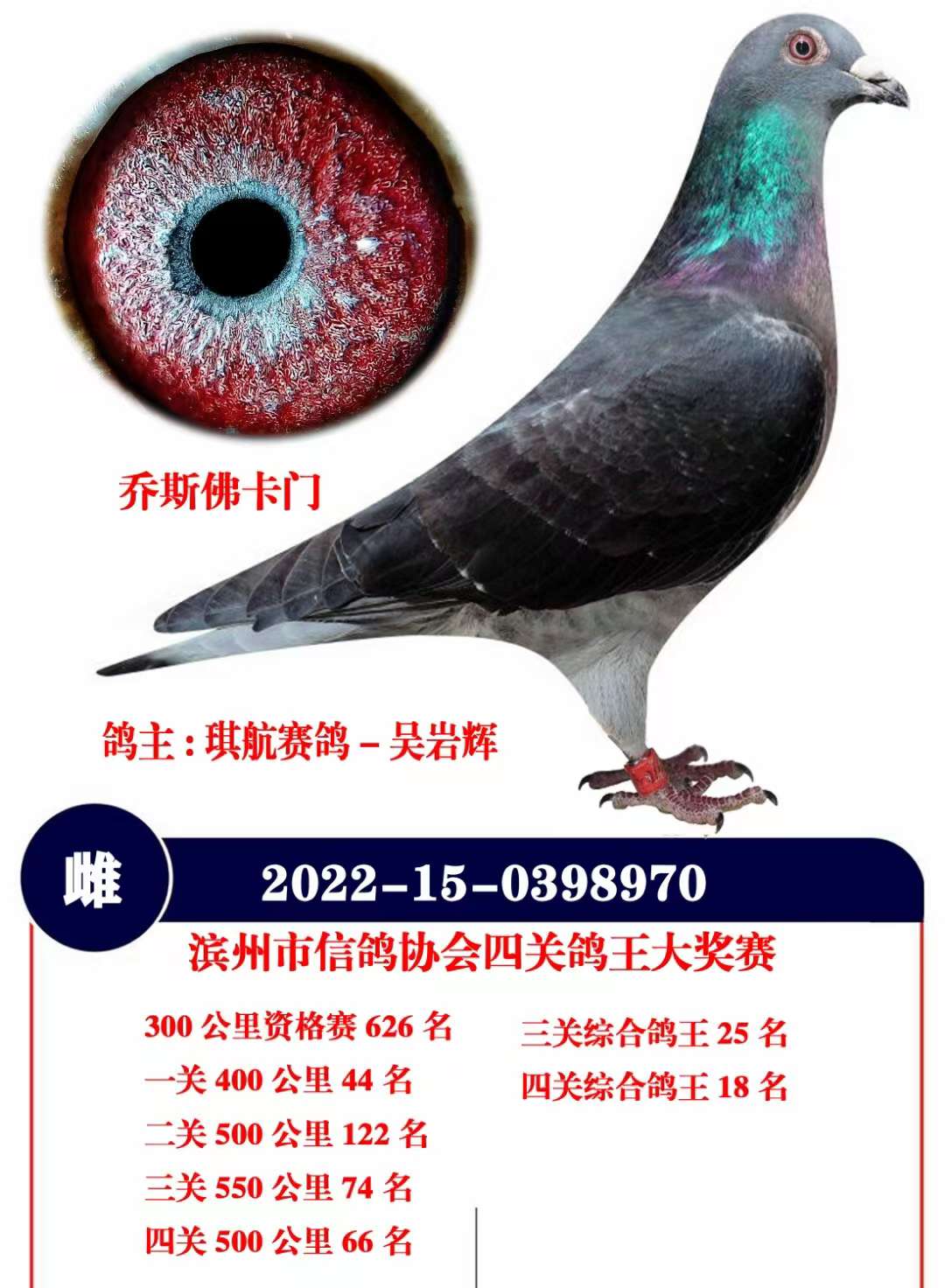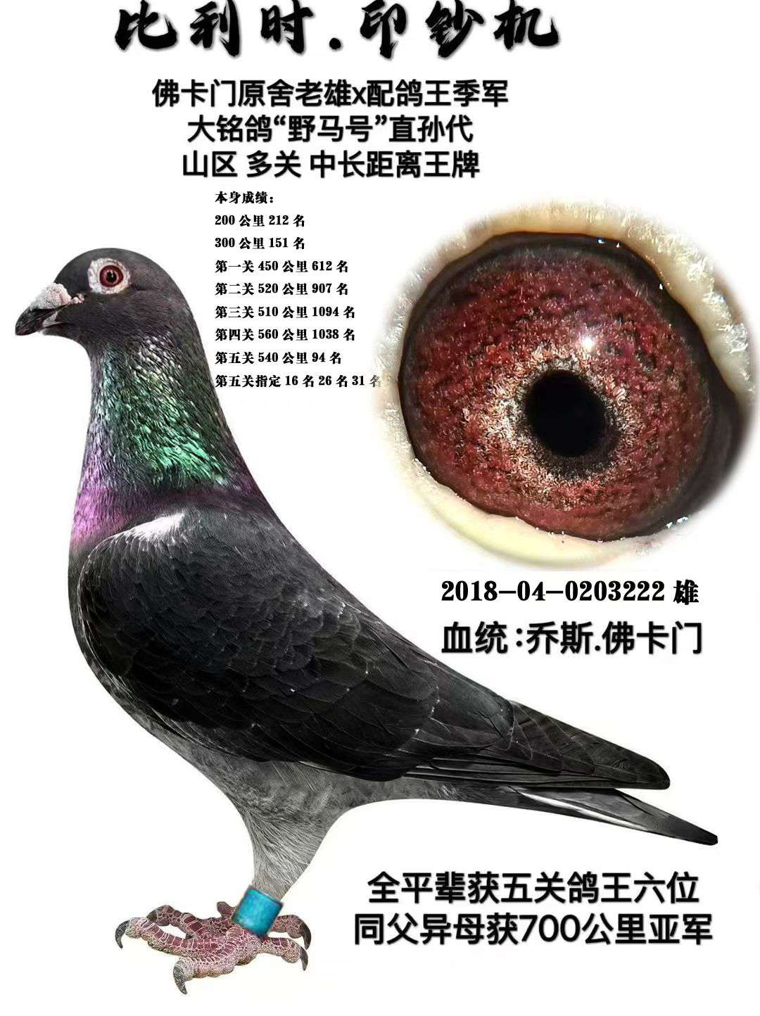 父亲乔斯佛卡门功勋种鸽。做出多羽进奖的鸽子
