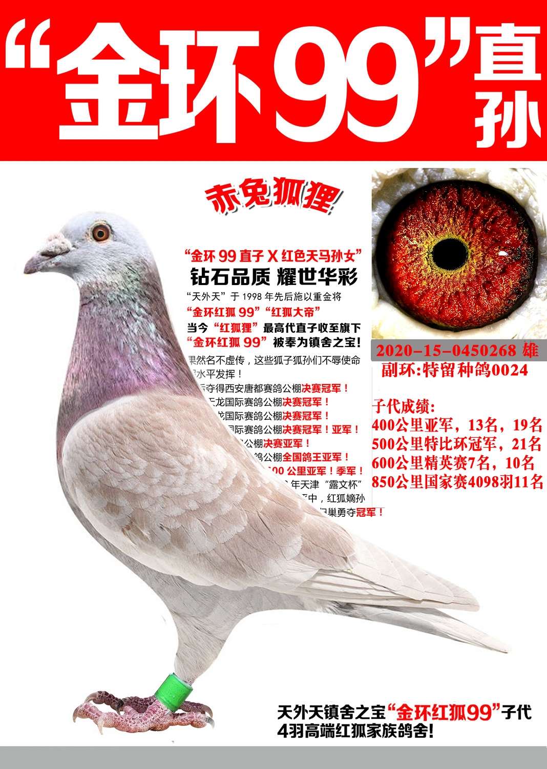 福利回馈鸽友詹森红狐金环99珍藏种公!手感骨架各方面质量超棒价格:178元 运费:60元 -