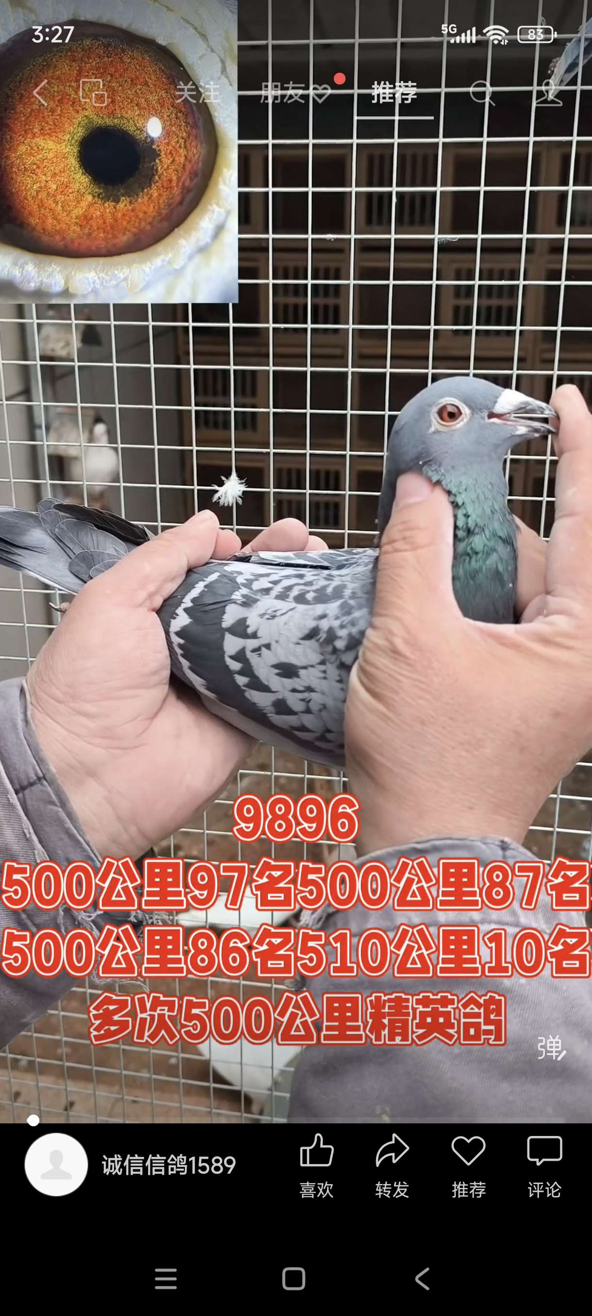 赢得奖金十几万 子代获得奖金上百万 依然正常出鸽子价格:300元 运费:30元 -