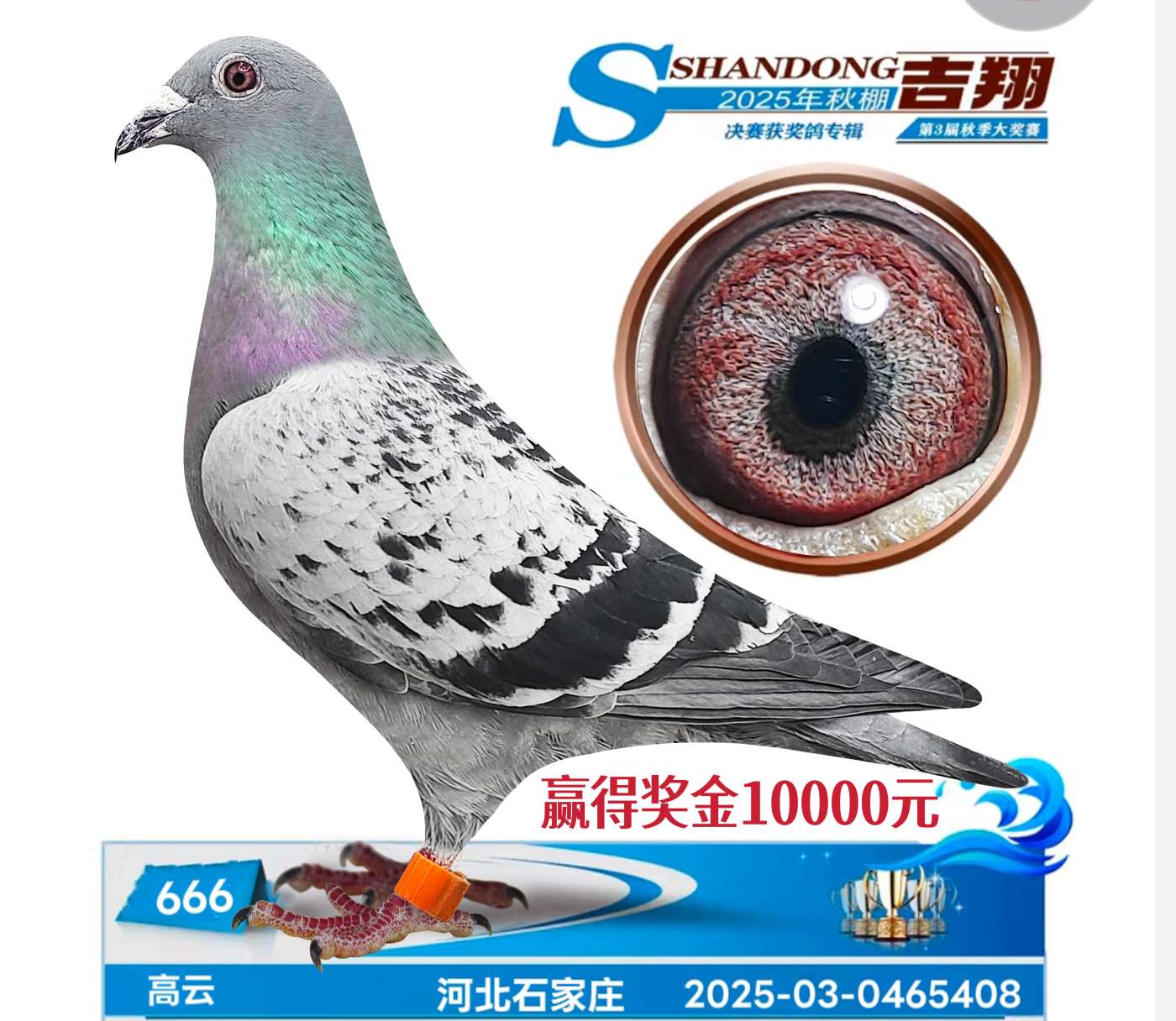 获得奖金1万元 母亲山东风帆公棚决赛6名 父亲:鲁能兄弟种雄价格:260元 运费:40元 -