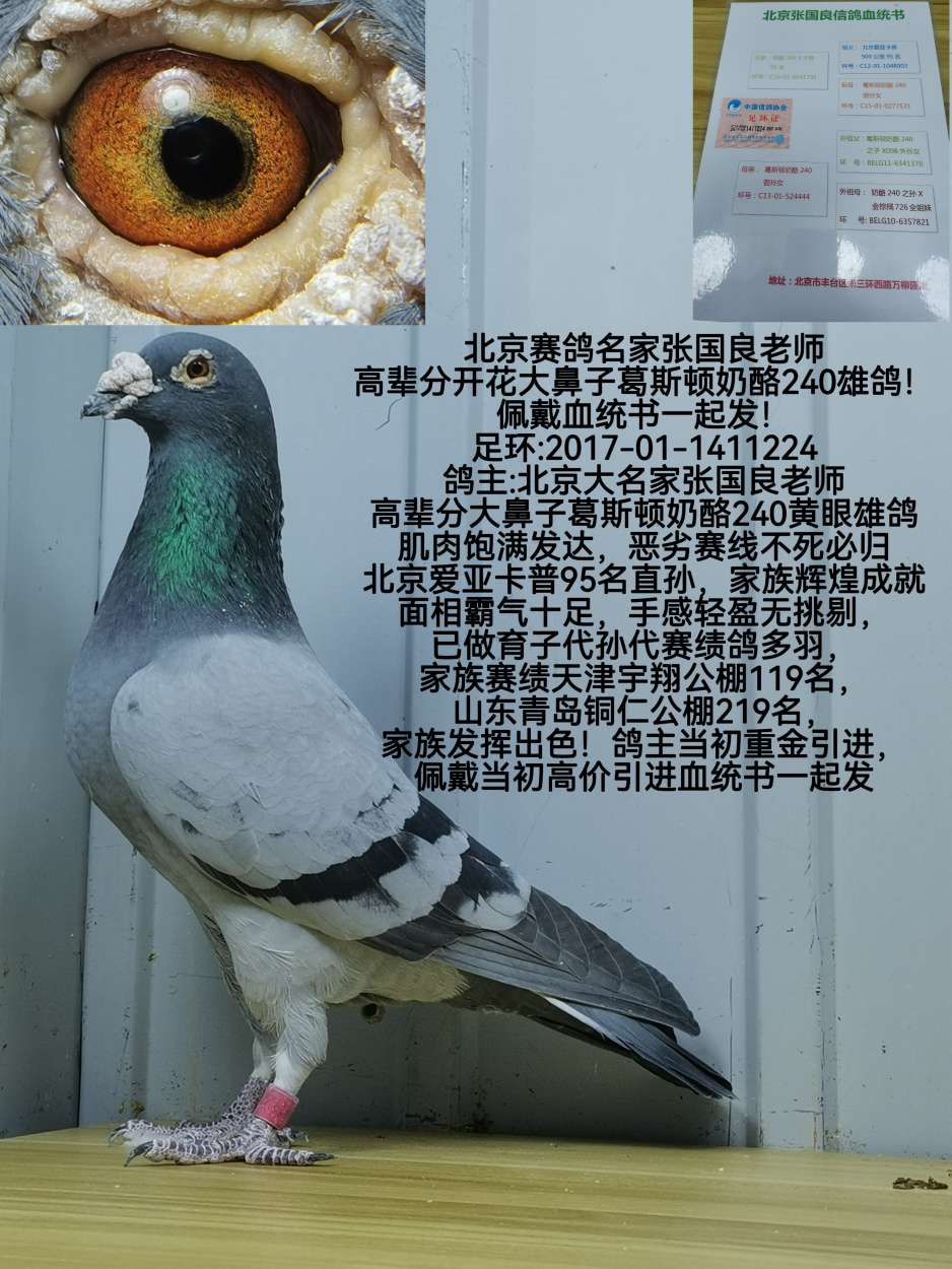 北京赛鸽名家张国良老师高辈分开花大鼻子葛斯顿奶酪240雄鸽!价格:800元 运费:0元