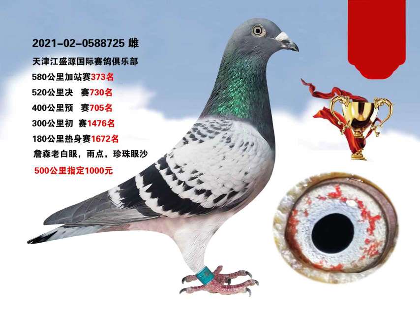 精品詹森老白眼雌鸽出售商家:沙漠珍珠大本营15701770551出价: ¥ 140.00/0次剩余时间:0天4小时4分 -